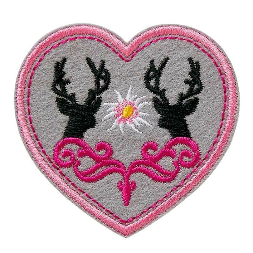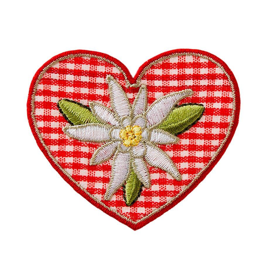 Mono Quick Trachtenherz Applikation, Bügelbild, Patch, Edelweiß Karo Herz Tracht