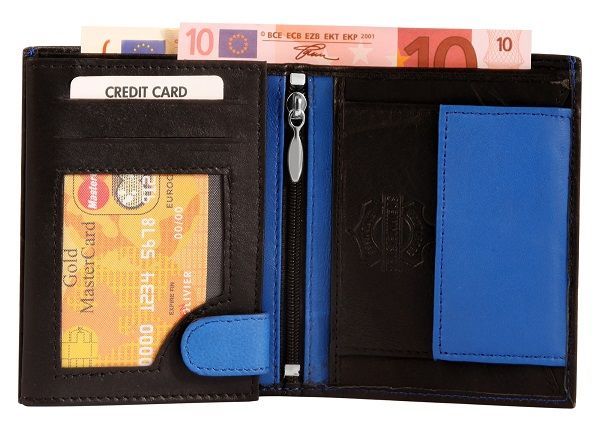 Monopol Monopol 3000166-002 Unisex Geldbörse Echtleder schwarz/ blau 10 x 12 x 3 cm Hochf