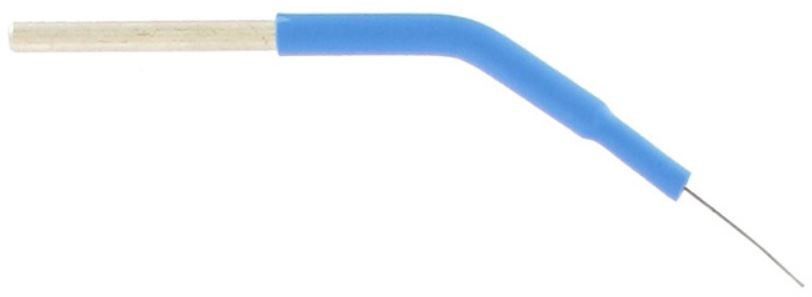 HF Drahtelektrode abgewinkelt 45° fein Elektrodenlänge: 5 cm Draht Durchmesser: 0,2 mm - 45° abgewinkelt Griff Durchmesser: 2,4 mm Sterilisation: Autoklav 134 ºC (10 Minuten) 121 ºC (20 Minuten) Sterilisationszyklus: 30 Paketinhalt: 6 x Stück