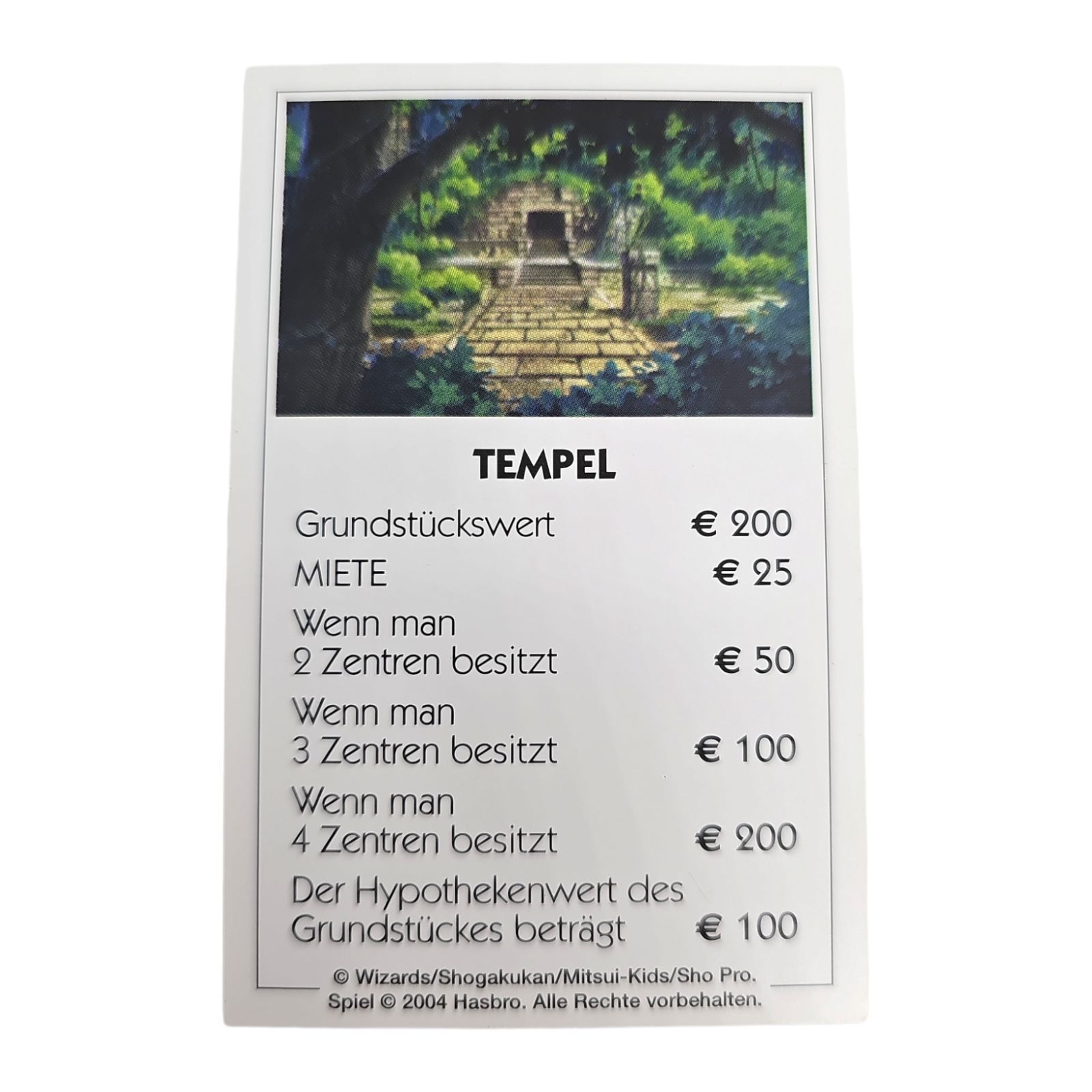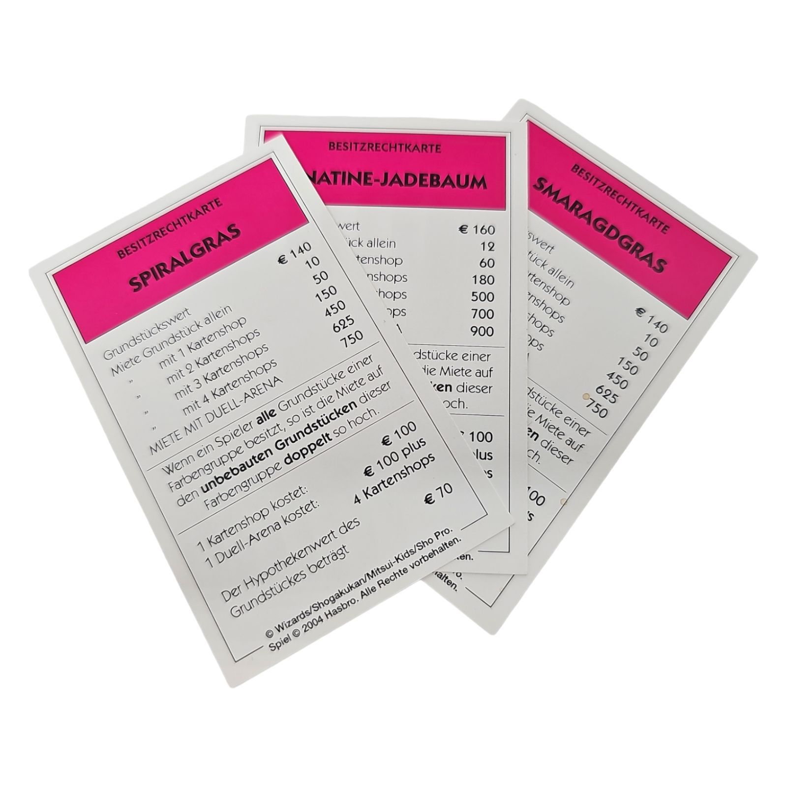 2 Häuser Blau, 2 Hotels Rot, Alle 16 Zauberspruchkarten, Alle 16 Kreaturkarten, Spielfigur 1, Spielfigur 2, Spielfigur 3