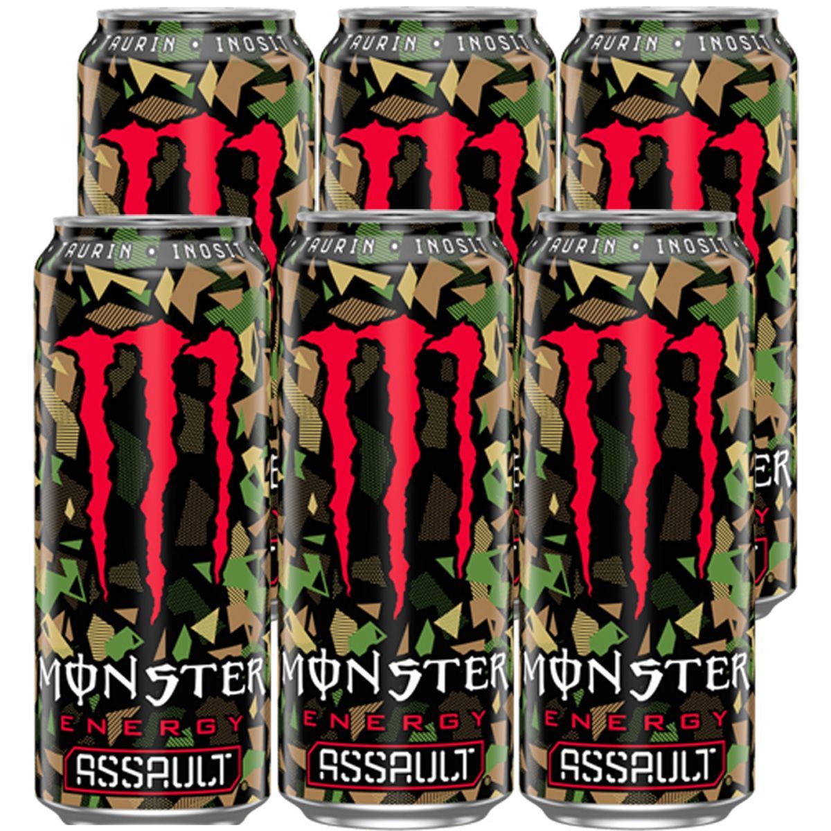 Monster Assault Erfrischungsgetränk mit Taurin Guarana 500ml 6er Pack