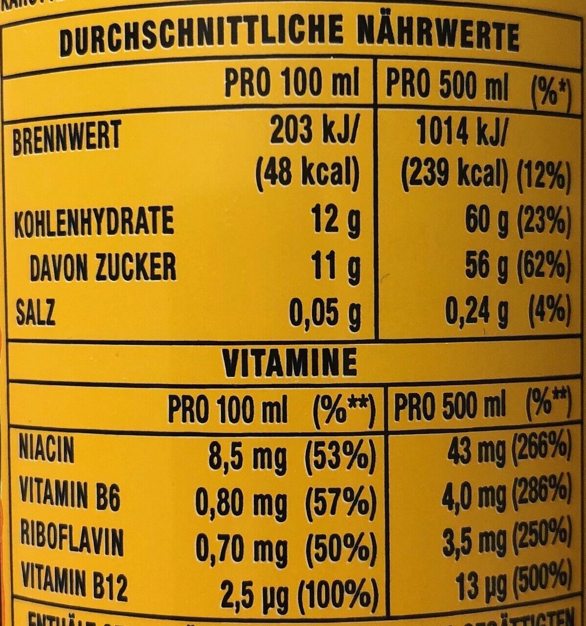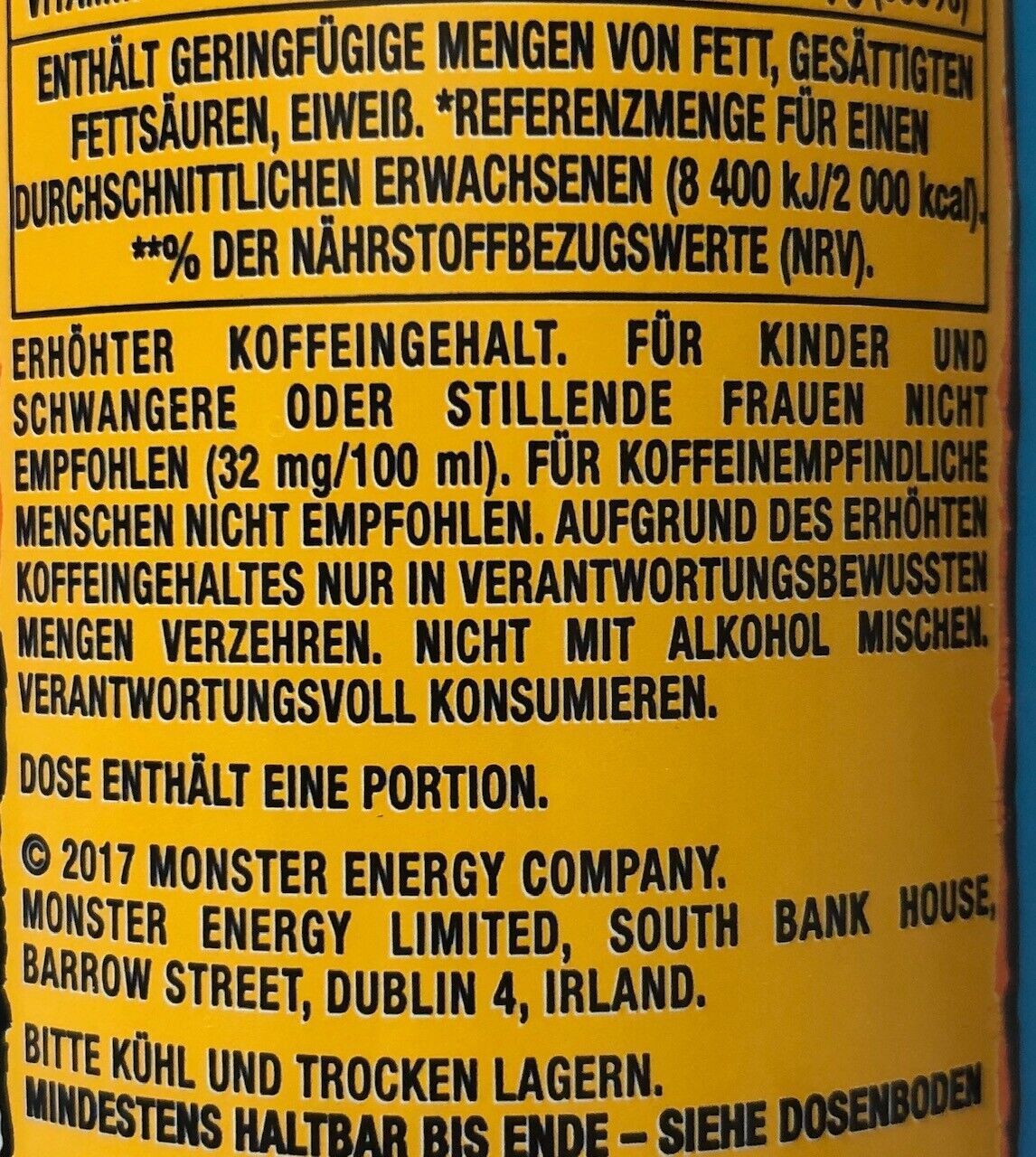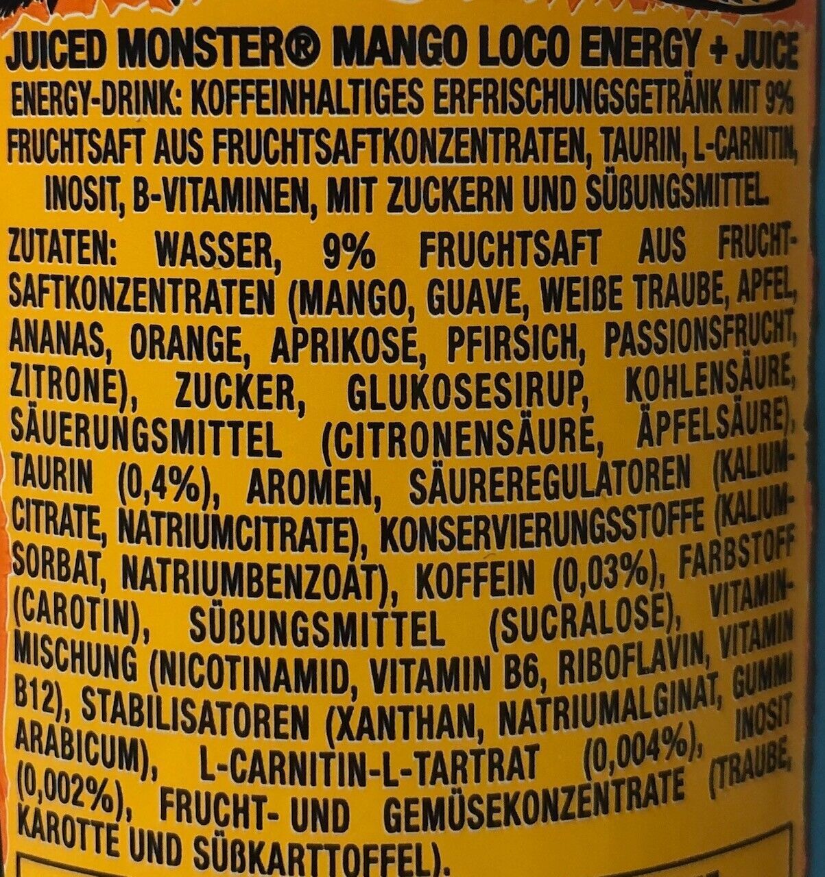 • Monster Energy Fiesta Mango mit einem Mix aus Taurin, Ginseng, Koffein 500ml