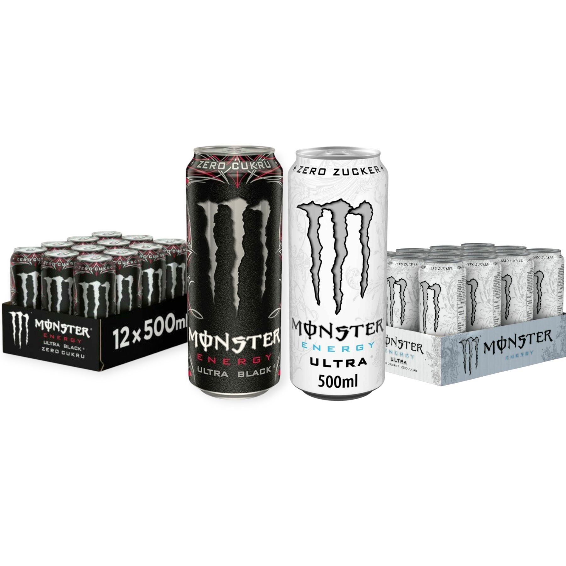 Monster Energy Mix Ultra Black & Ultra White 6 x 0,5l |Zuckerfrei |Energy Drink Duo