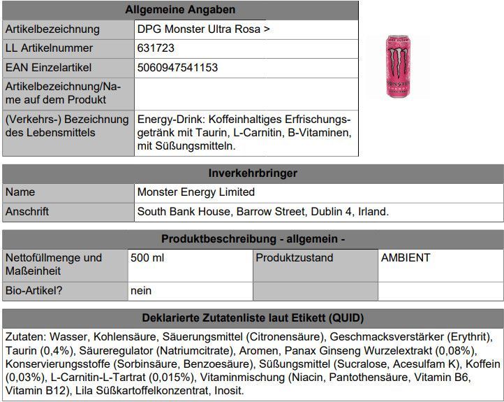 Monster Energy Ultra Rosa 12x0.50L Ds., Einweg-Pfand