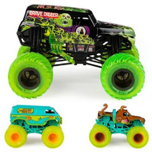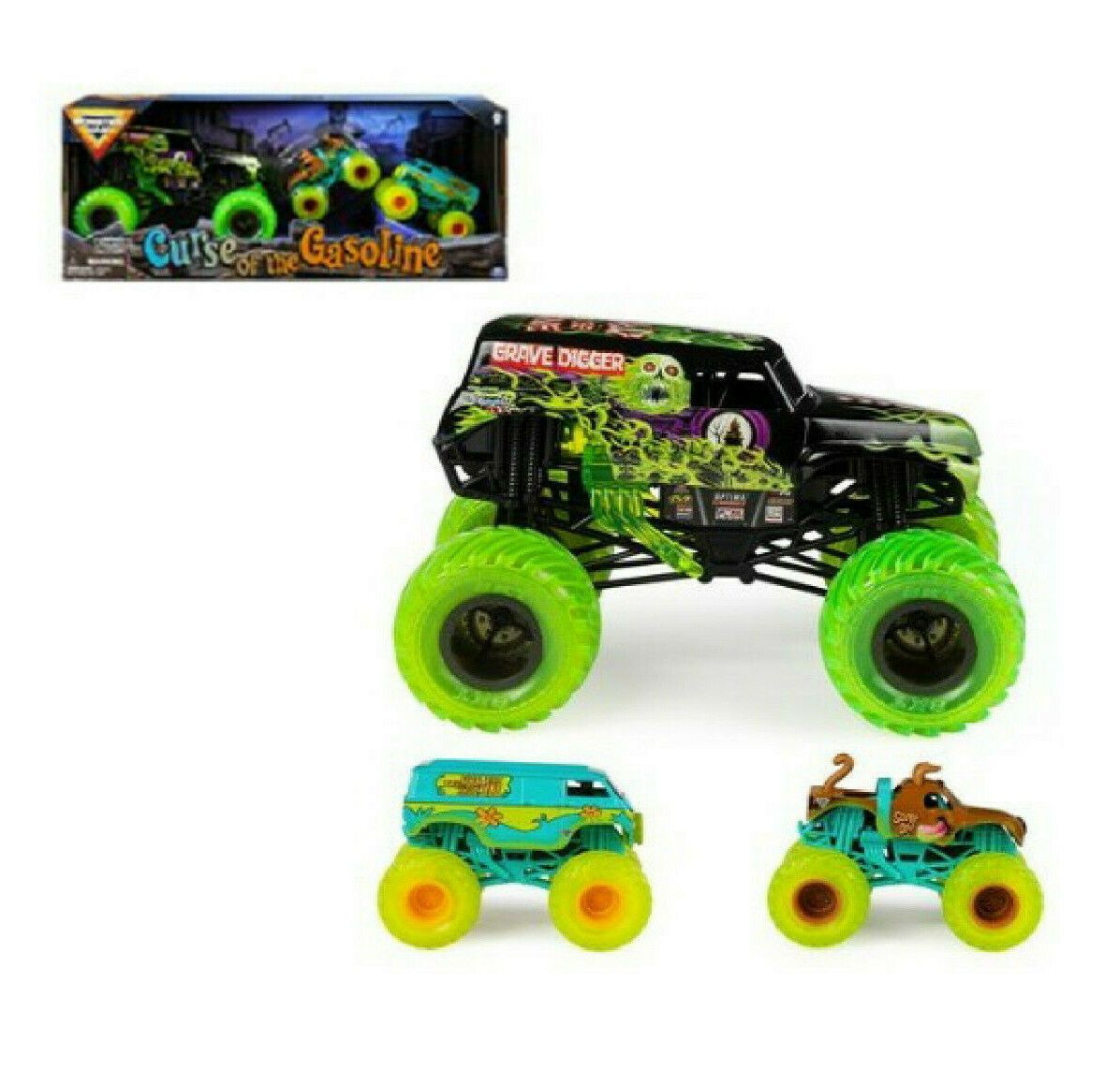 Monster Jam Cruse of the Gasoline 3er Pack Grave Digger 1:24 Scooby-Doo 2x 1:64