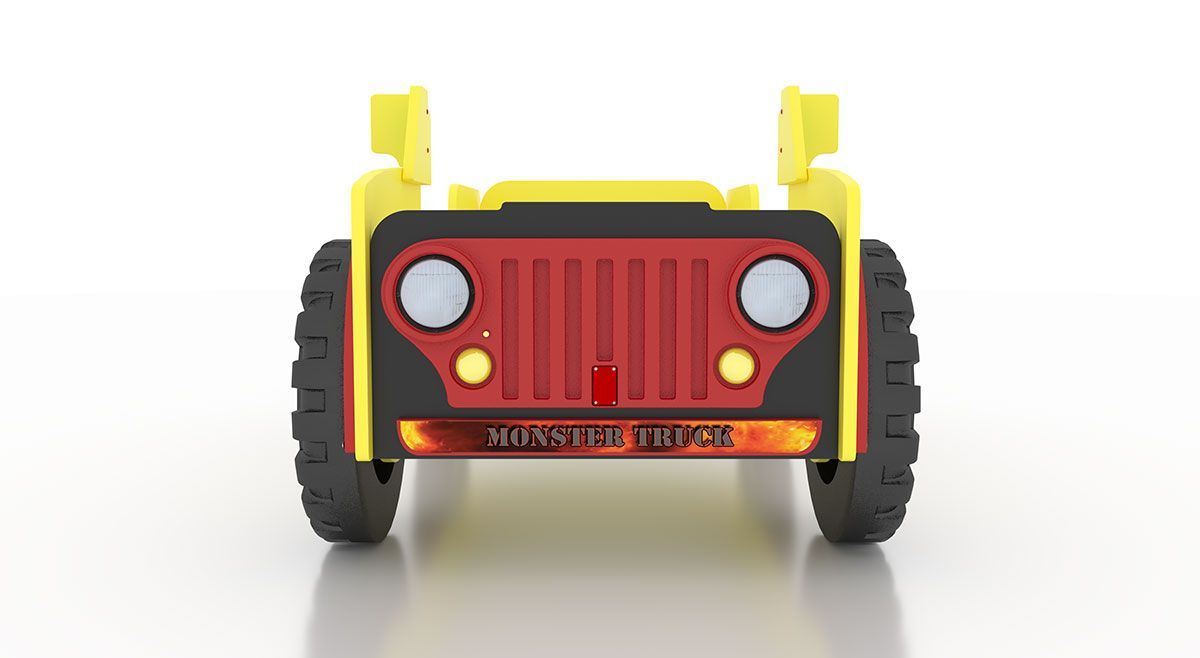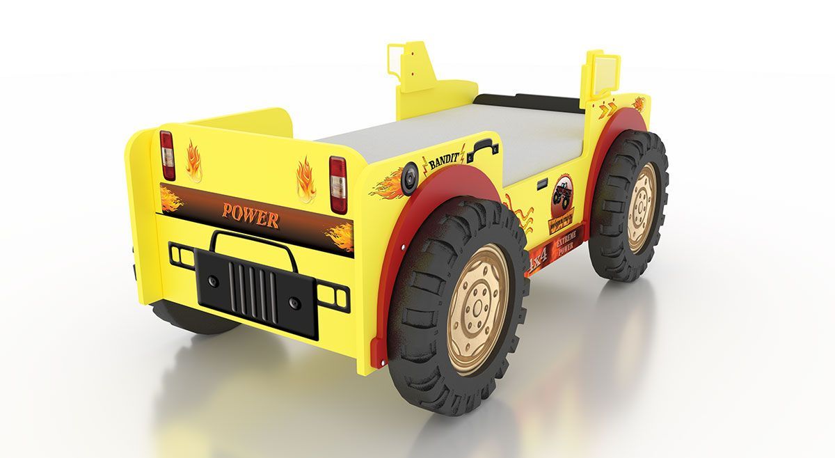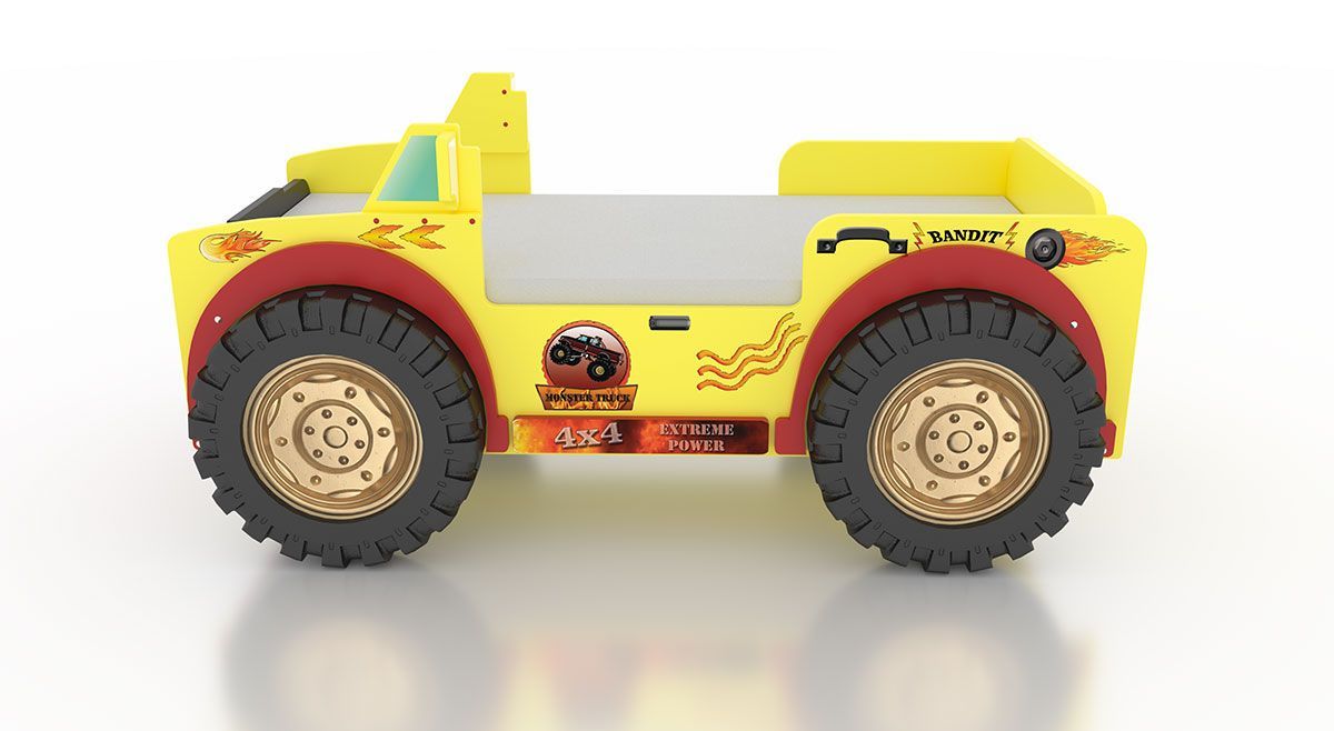 Monster Truck Kinderbett Gelb/Rot – MDF, 207x116x90