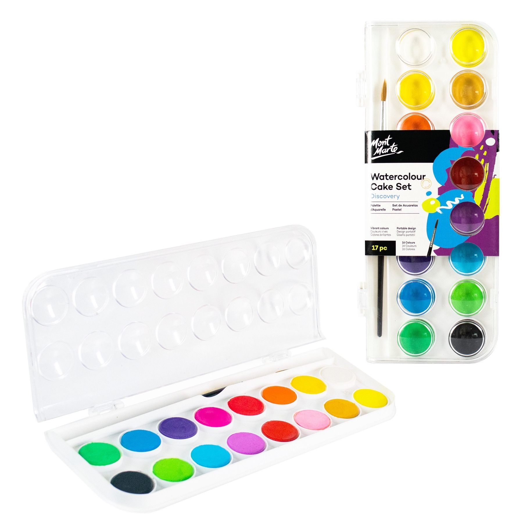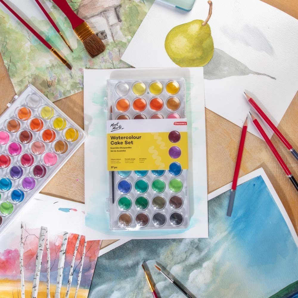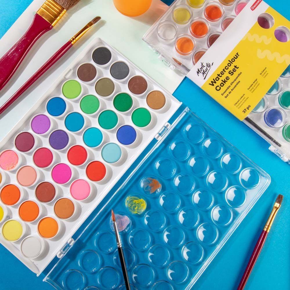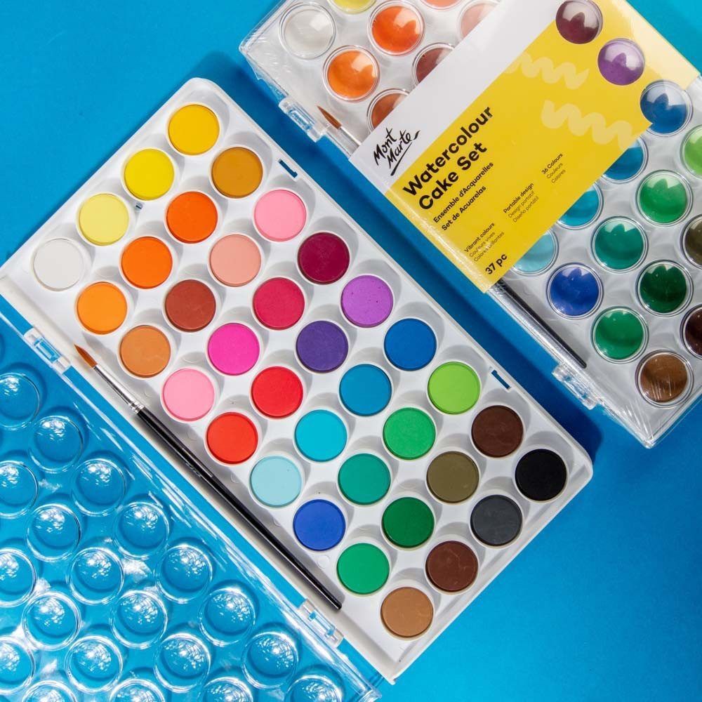 Mont Marte - Aquarellfarben/Wasserfarben Set - 16/24/36 brillante Farben mit Pinsel