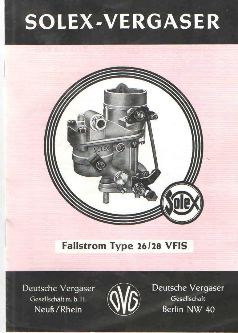 Montage und Bedienungsanleitung Solex Vergaser Flachstrom Type 26/28 VFIS