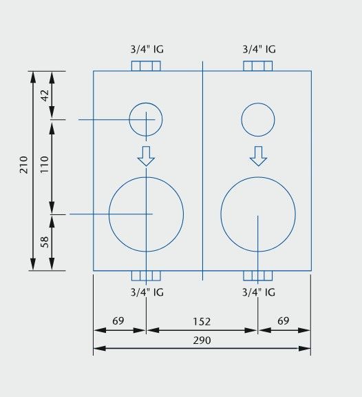 Montageblock-Duo Koax 2" für Wasserzähler mit Standard - Ventil