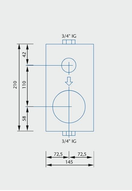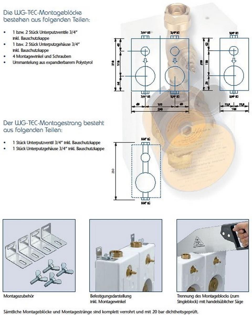 Montageblock-Mono Koax 2" für Wasserzähler mit Standard - Ventil