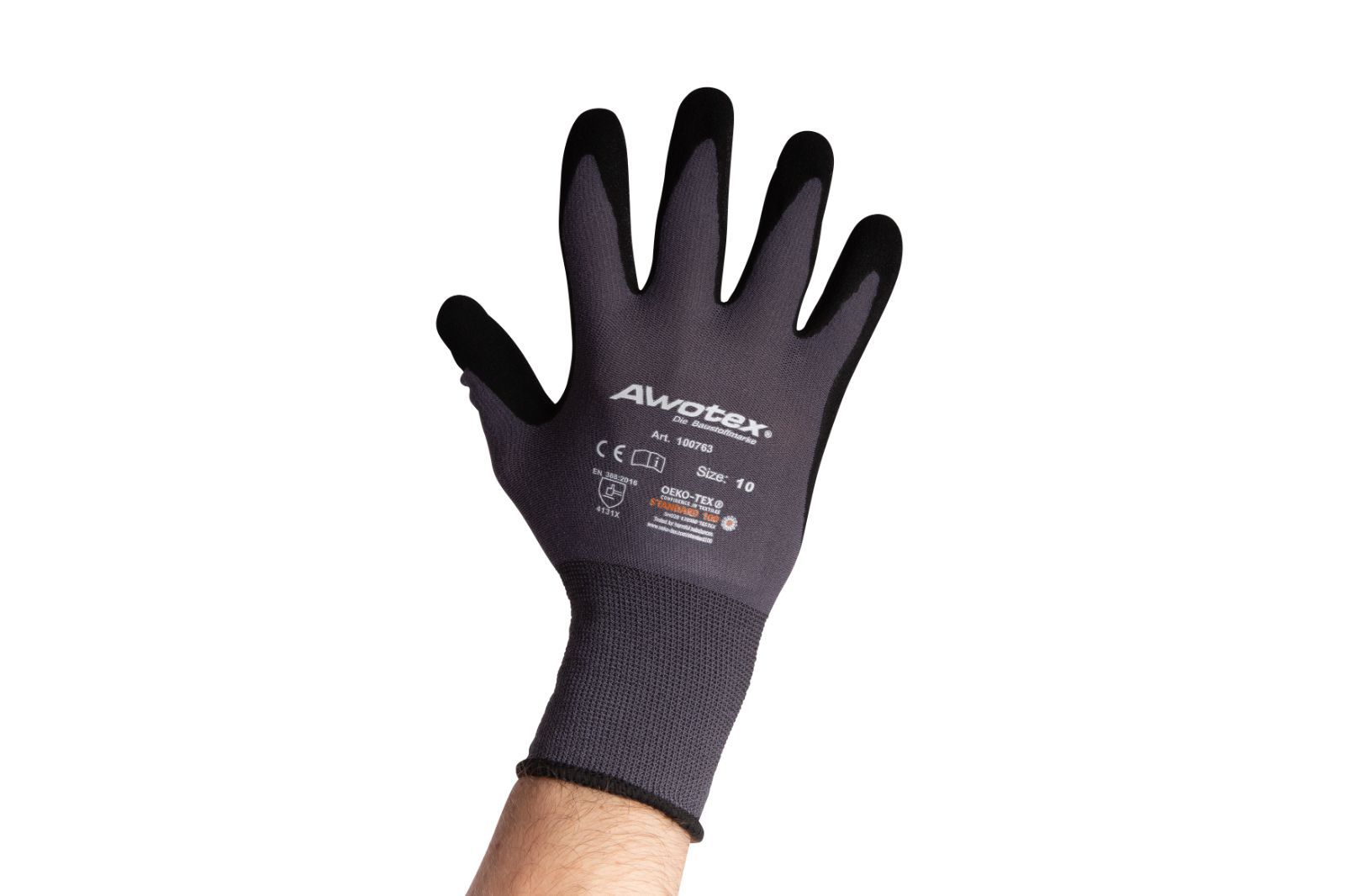 Der Montagehandschuh von Awotex ist aus robustem Nitril gefertigt und eignet sich perfekt für den Einsatz in verschiedenen Arbeitsbereichen. Die schwarze Farbe und das unisex Design machen ihn zu einer idealen Wahl für alle Geschlechter. Hergestellt in Deutschland, bietet er eine hohe Qualität und L