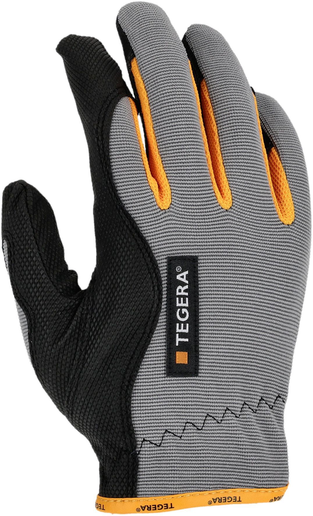 TEGERA 9124 Ergonomischer Synthetikhandschuh aus Microthan+® für vielseitige Tätigkeiten. Ventilierende Oberseite für höheren Komfort. Das robuste Microthan®+ mit diamantförmigem Griffmuster bietet fantastischen Grip in trockenen und nassen Bedingungen. Das rundum elastische Bündchen bietet optimale Passform und ganztägigen Komfort.