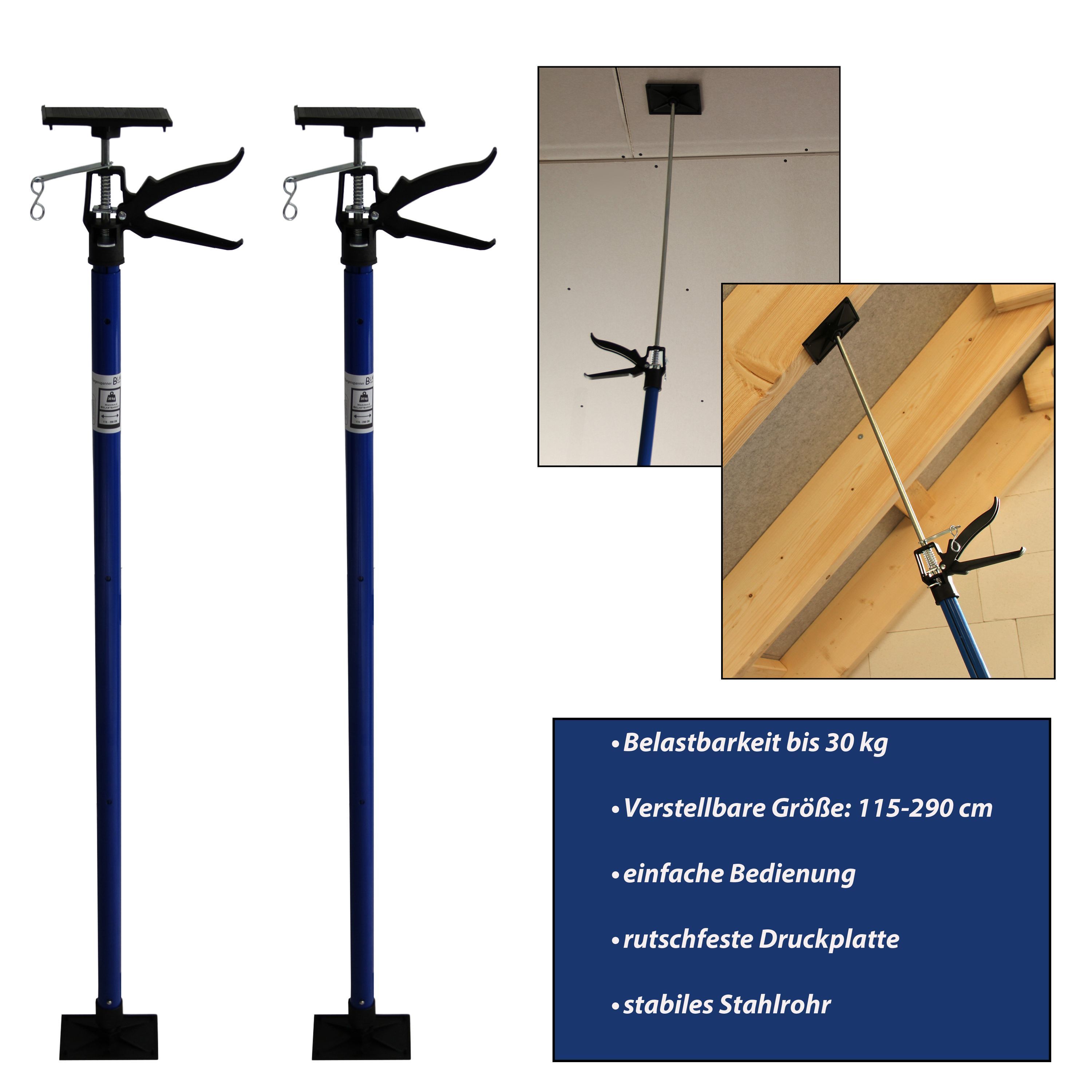 Montagestütze Deckenstütze Einhandstütze Teleskopstütze Gips 115-290cm blau 2x