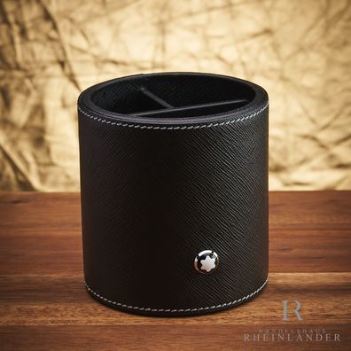• Montblanc Desk Accessories Pen Holder Round Leather Black Stifthalter ID 133163