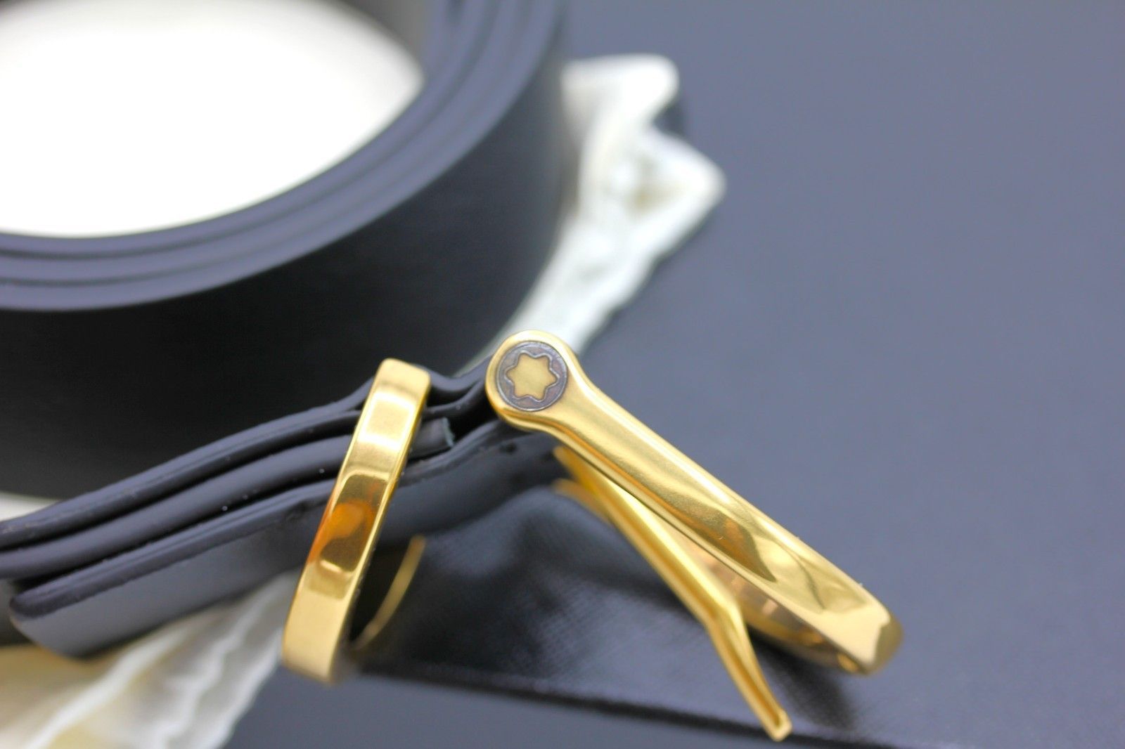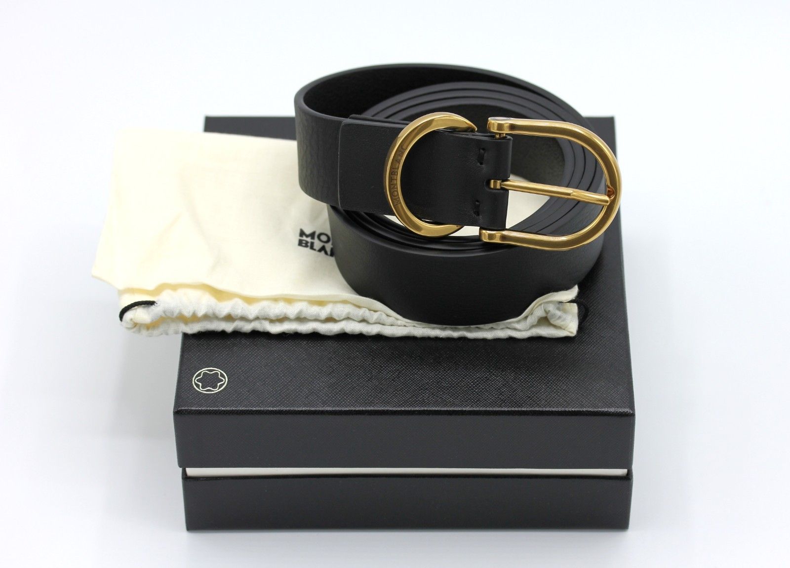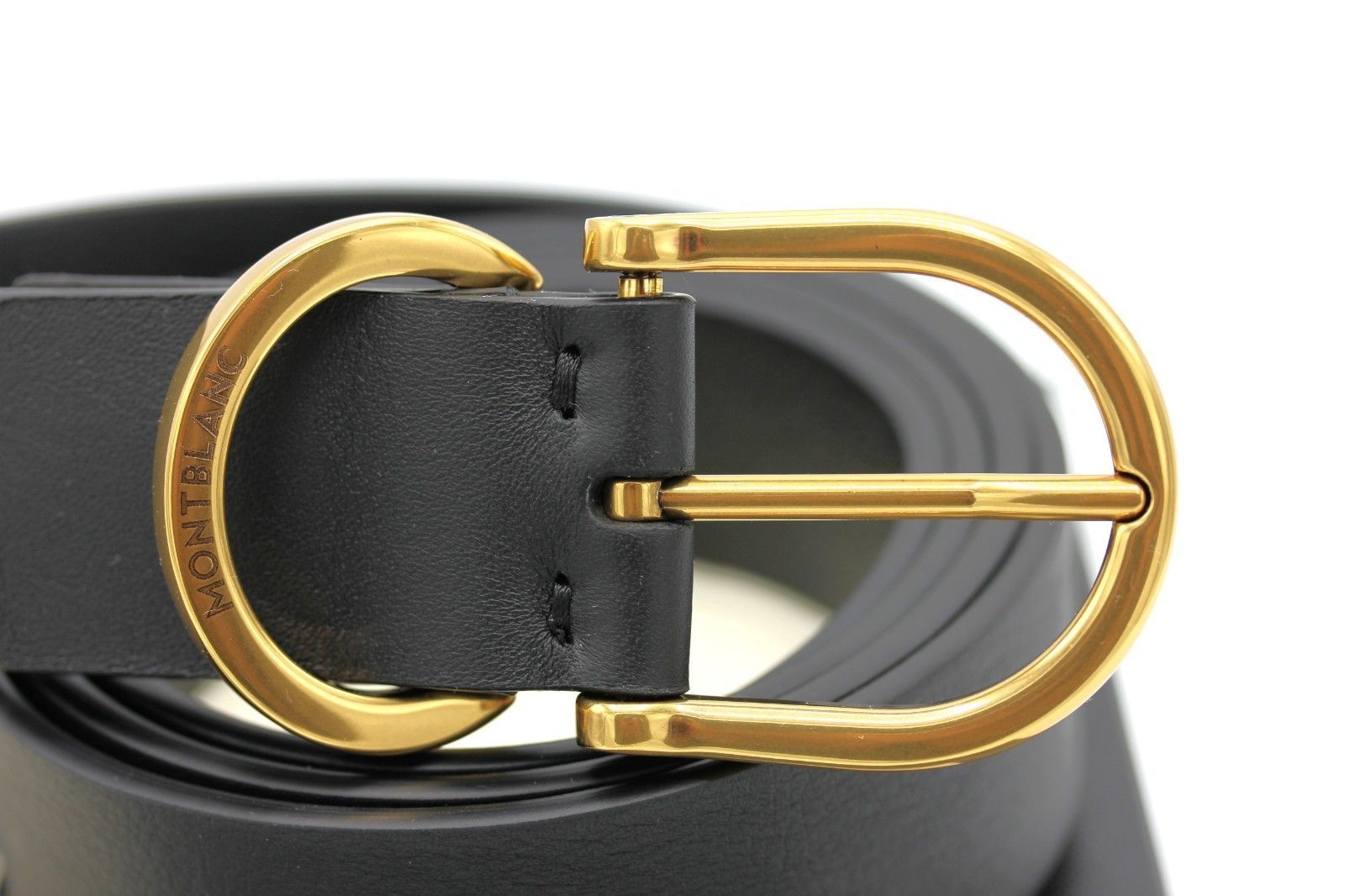 Montblanc Leder Gürtel mit Vergoldeter Schließe / Schwarz / 118457 / NEU / OVP
