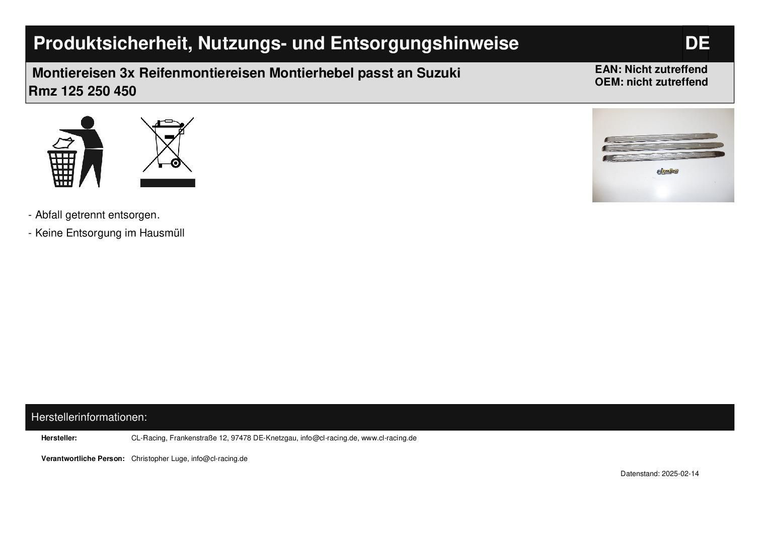 Montiereisen 3x Reifenmontiereisen Montierhebel passt an Suzuki Rmz 125 250 450