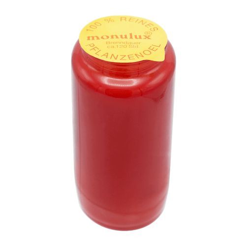 MONULUX-Glasöllicht, 100% reines Pflanzenöl, Brenndauer ca. 120 Stunden, 140/65 mm, Karton mit 20 Stück, Rot