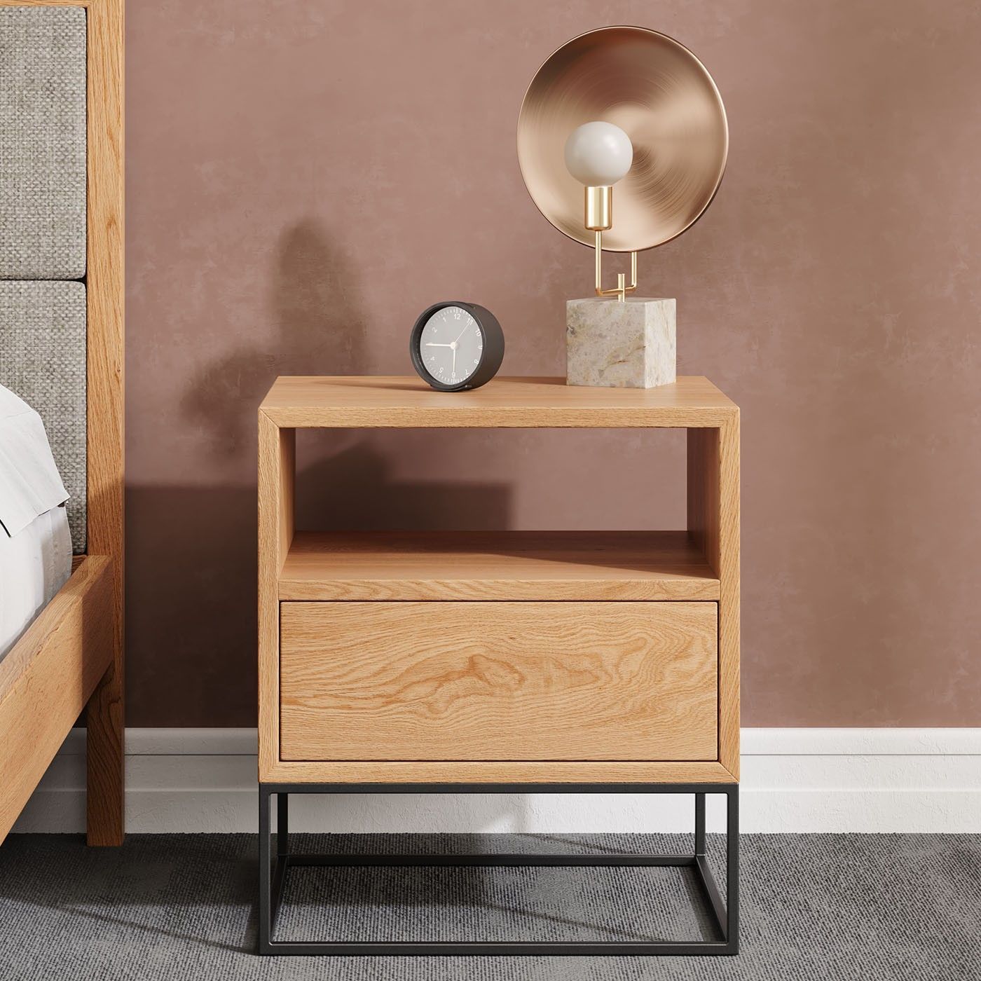 Moon-Nachttisch aus Massivholz Eiche