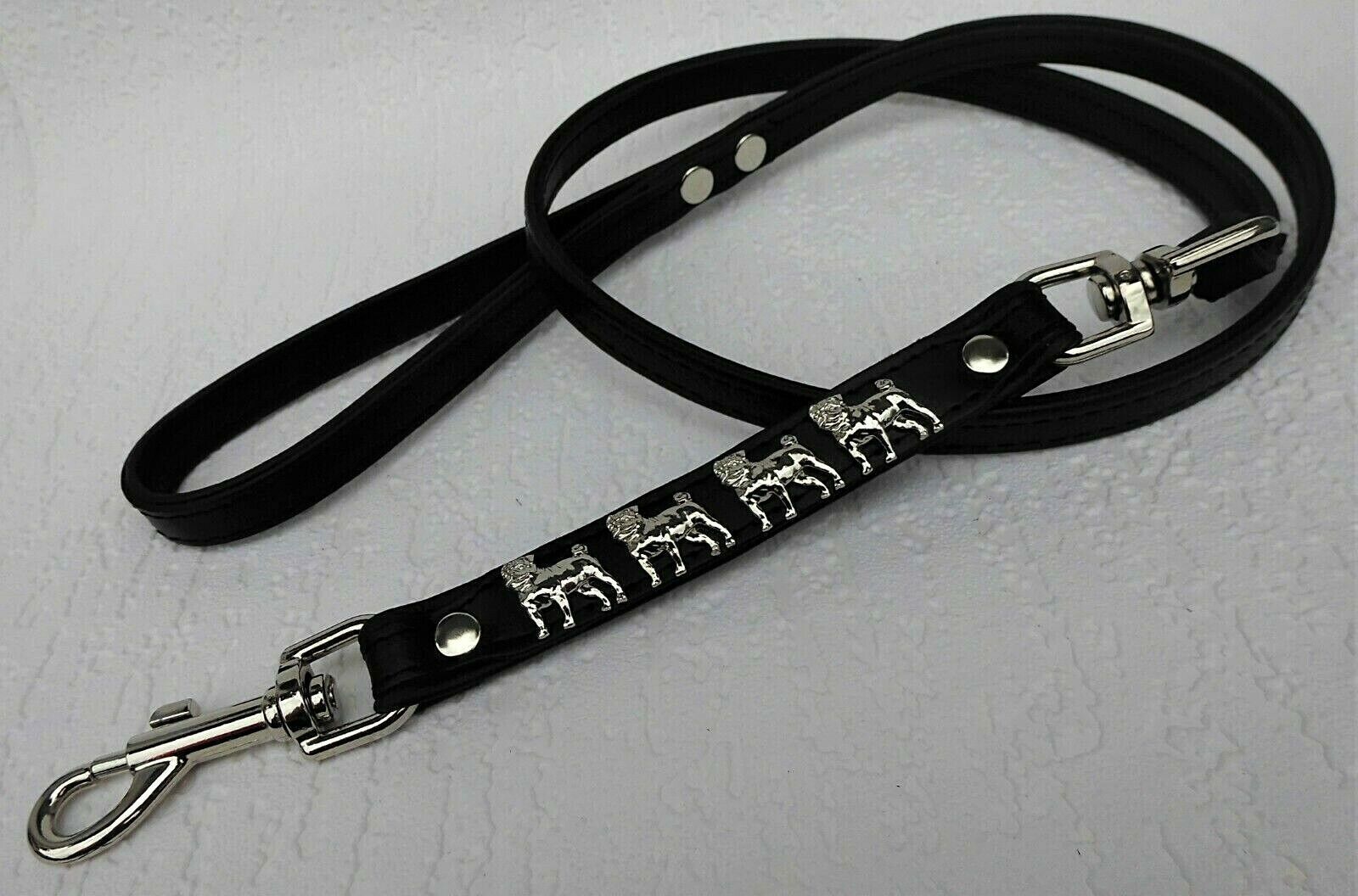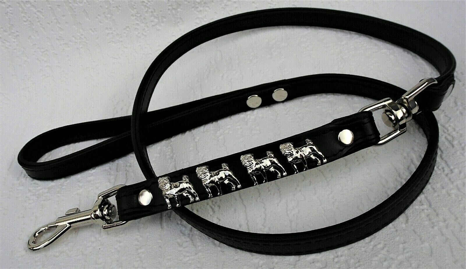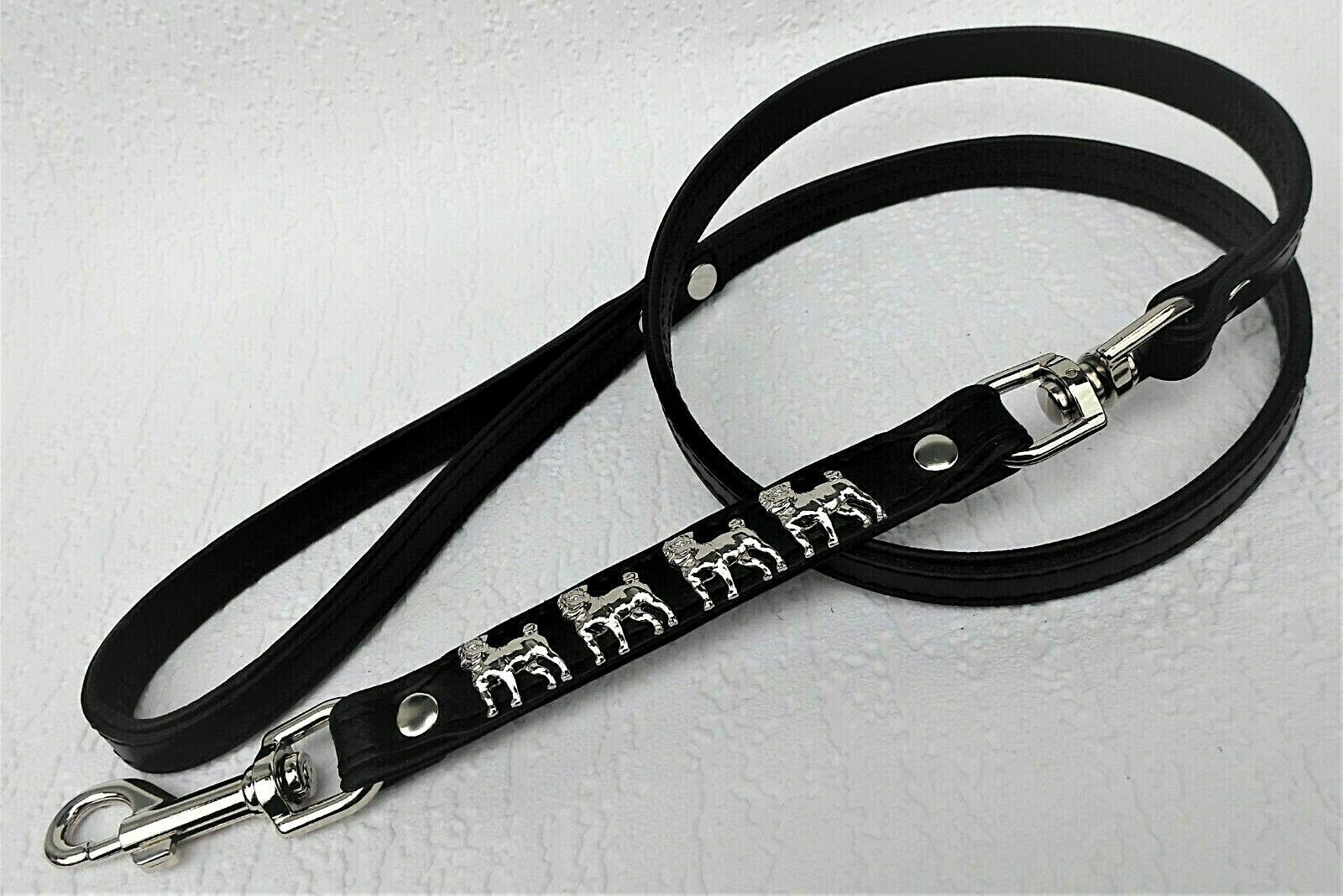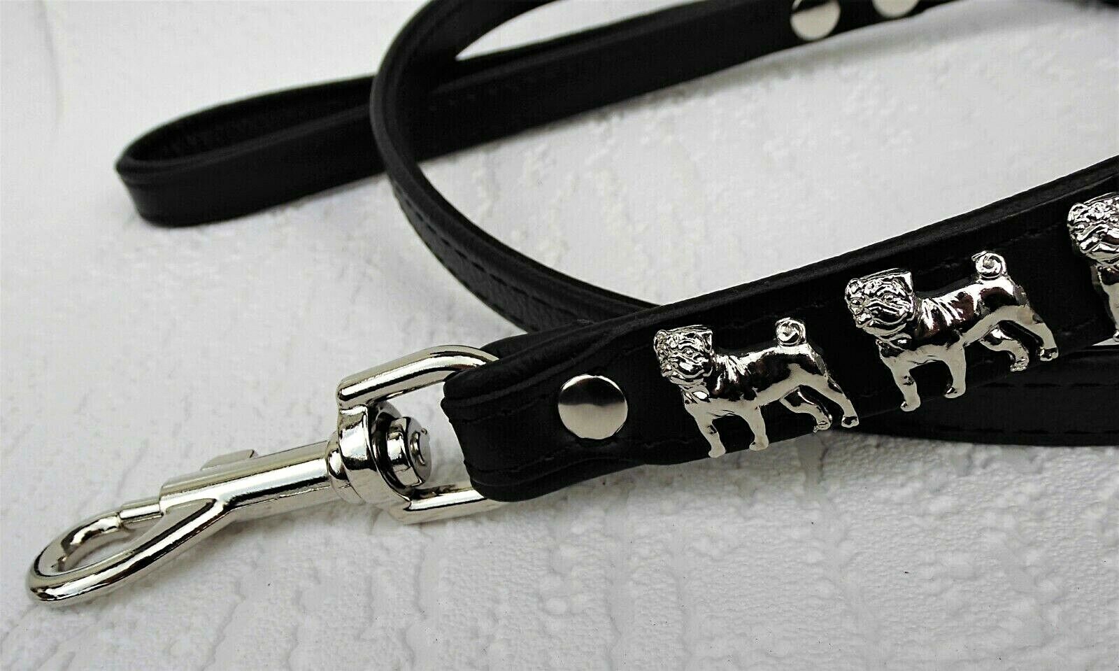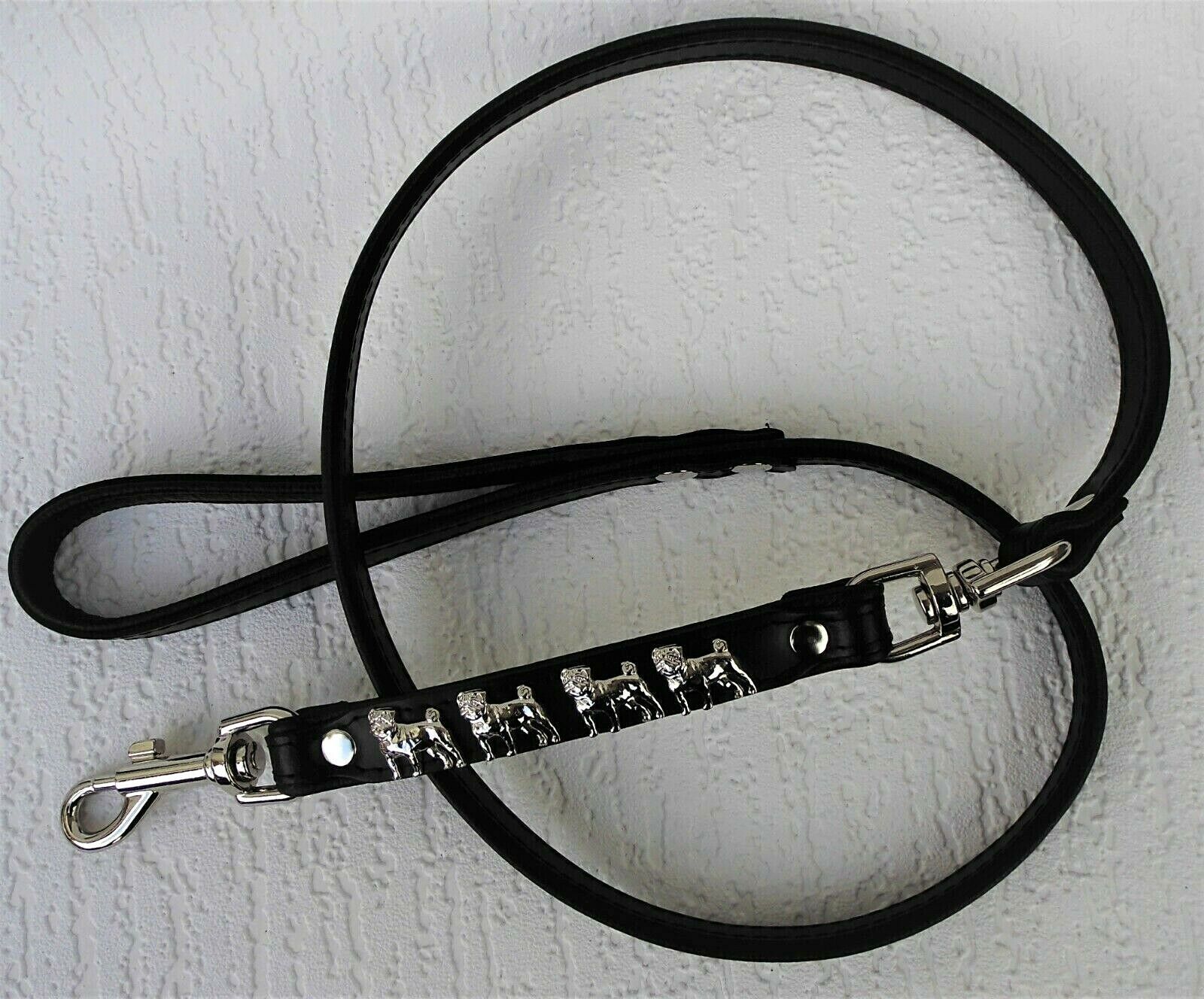 MOPS Hundeleine - Leine Metallaplikationen, Leder 125cm, Schwarz (700)