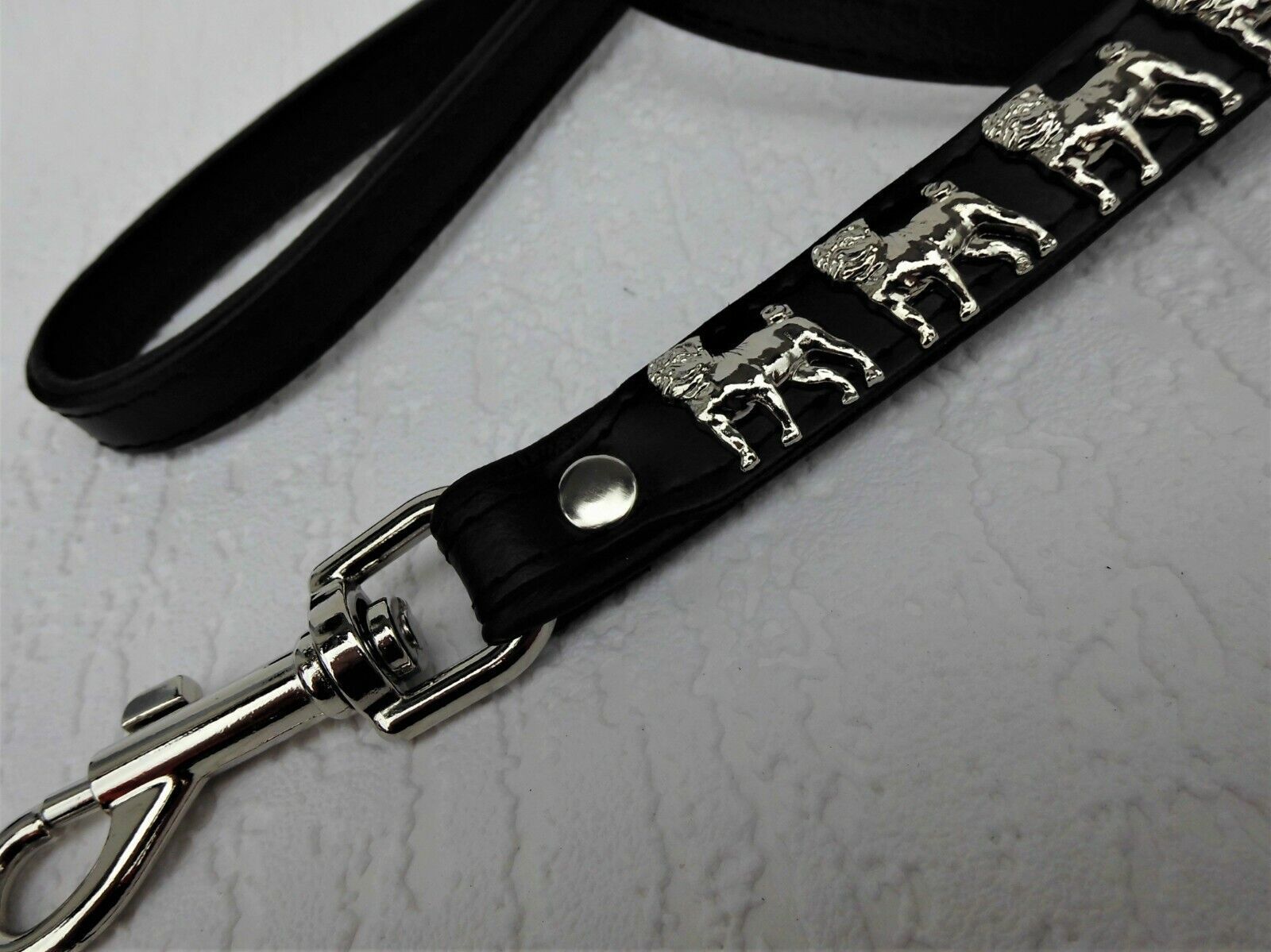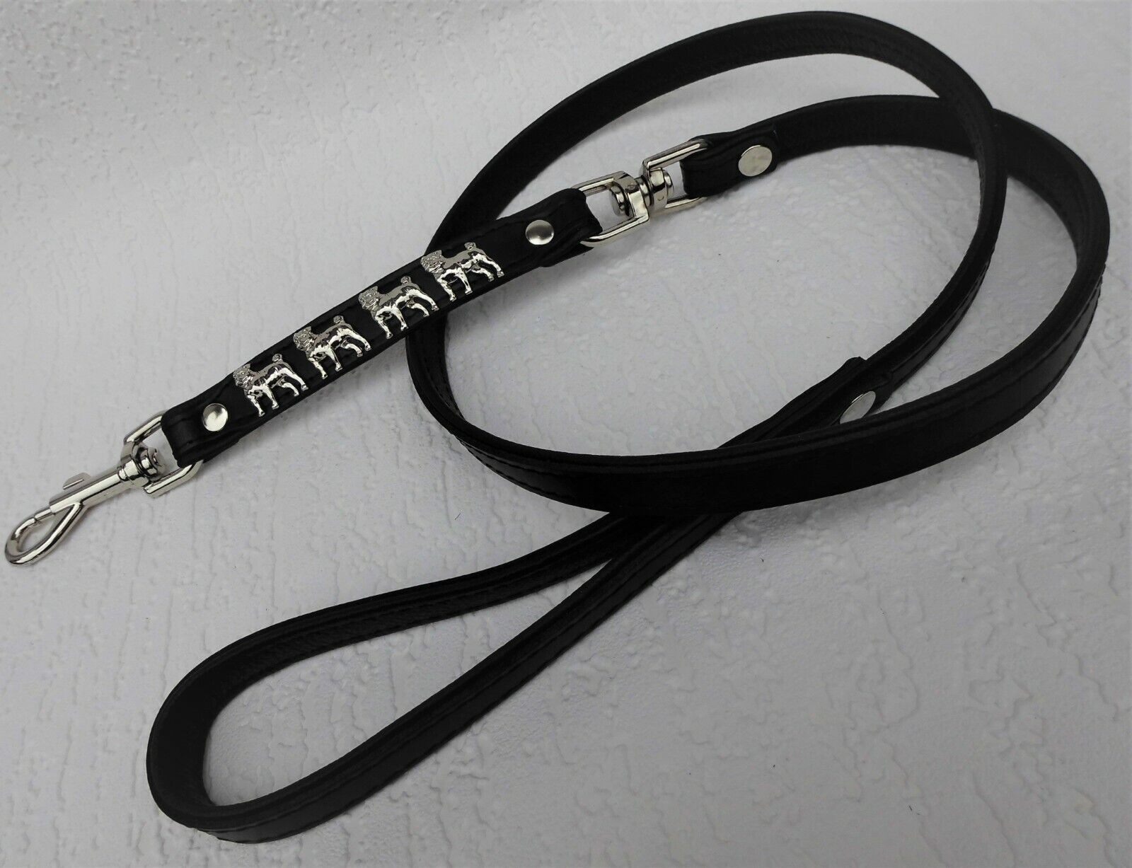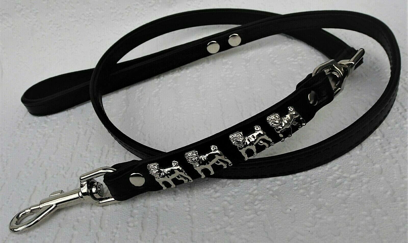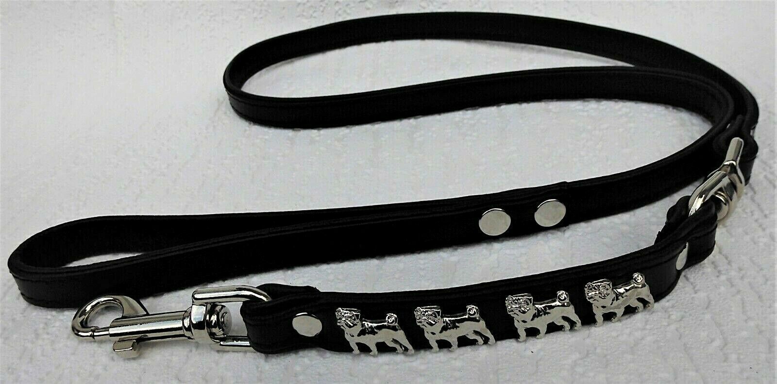 LEDERFÜHRLEINE mit tollen Metallaplikationen *** Schwarz *** * MOPS * Maße: Gesamtlänge : 125 cm Breit : 16 mm Material - 100% hochwertiges Leder, sehr robust - Verziert mit kleinen Hunden - Metallteile vernickelt - gibt es passendes Halsband Schauen Sie bitte auch noch weiteren interessanten Artike