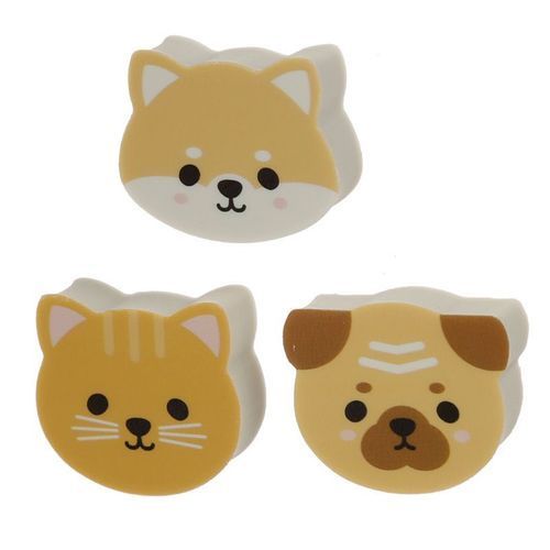 Mops, Katze, Shibu Inu Hund Radiergummis 3er Set (pro Stück)