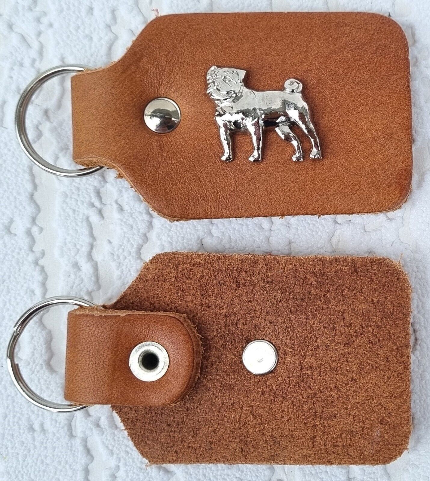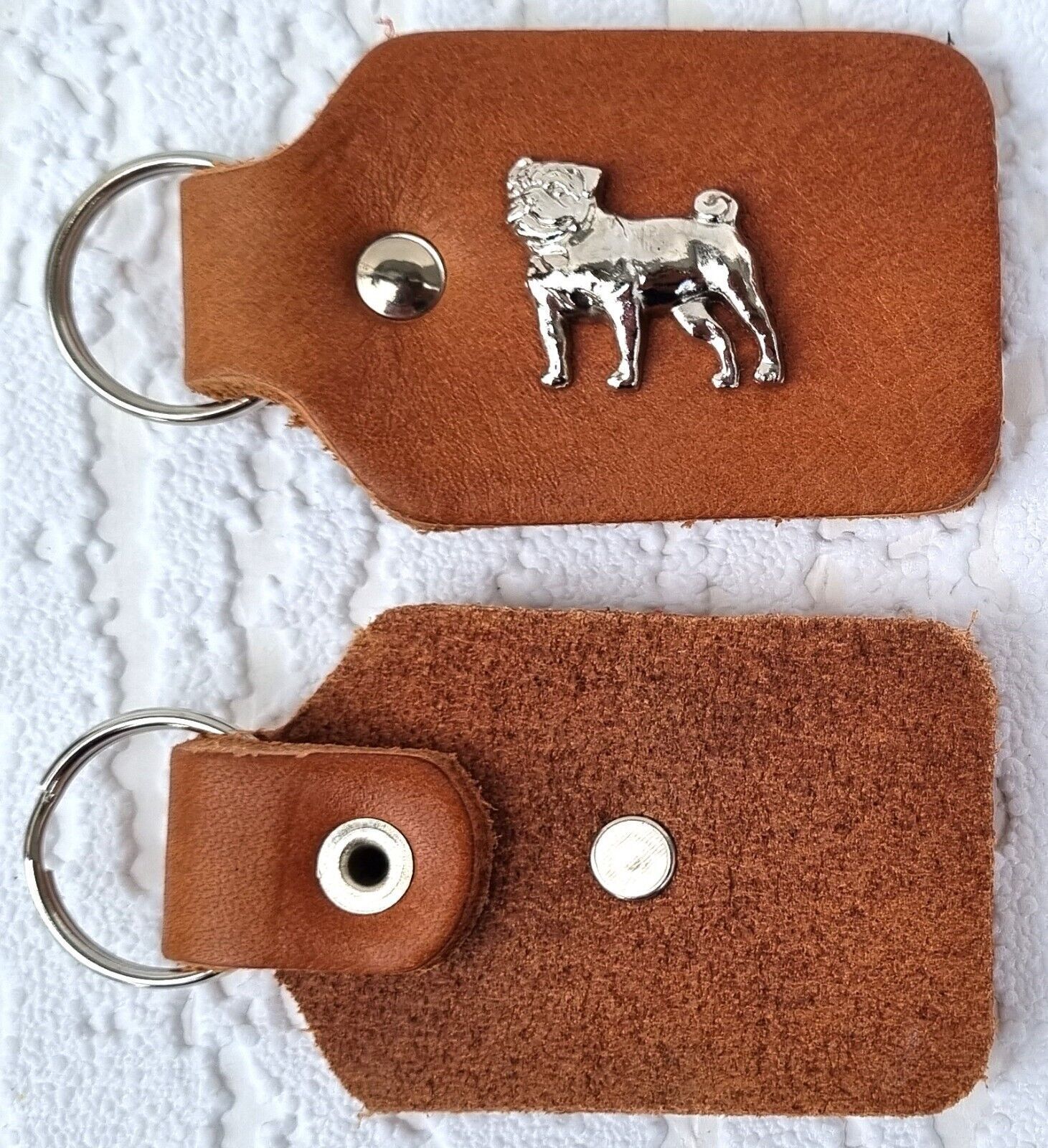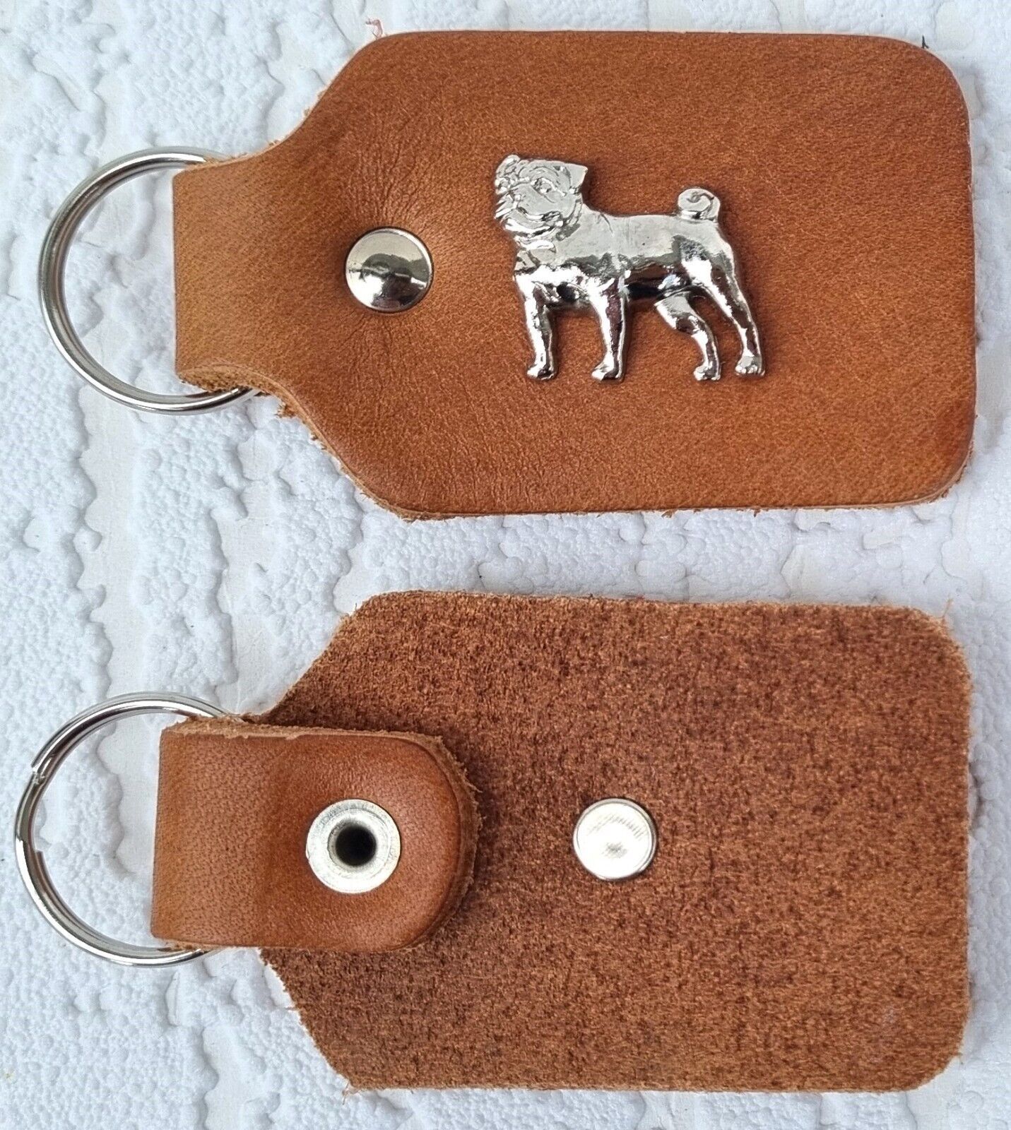 MOPS - Schlüsselanhänger Metallaplikationen, Echt LEDER - Cognac