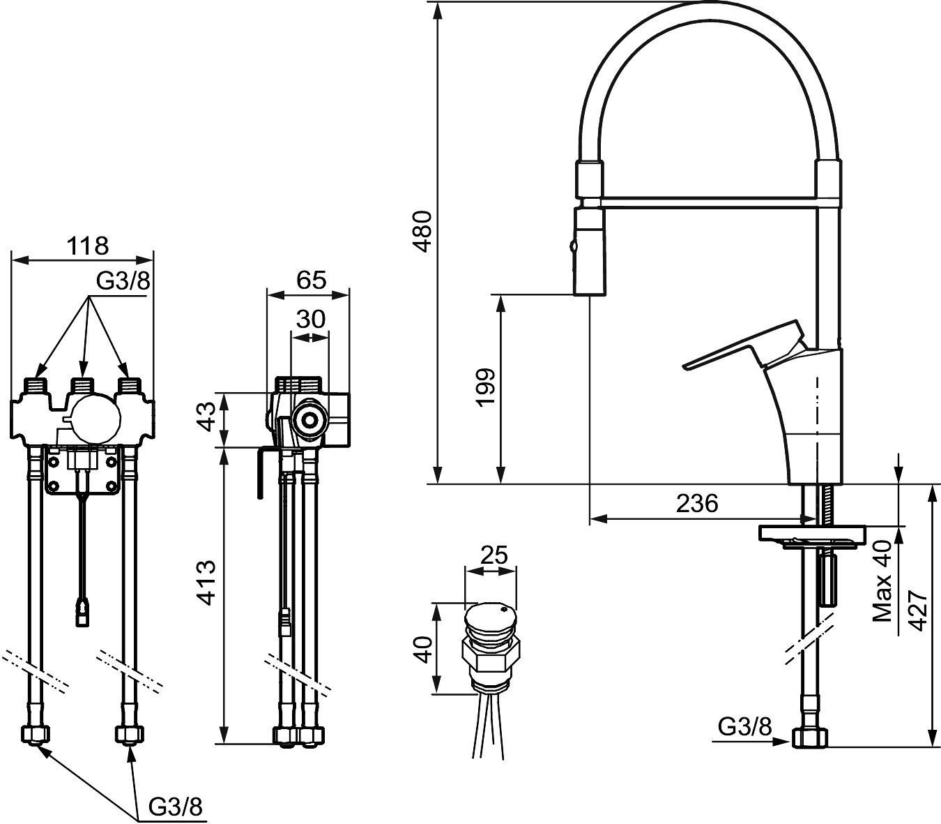 Mora CERA duo miniprofi Hybrid m. Hygienespülung mit Geräteanschlussventil Batterie C