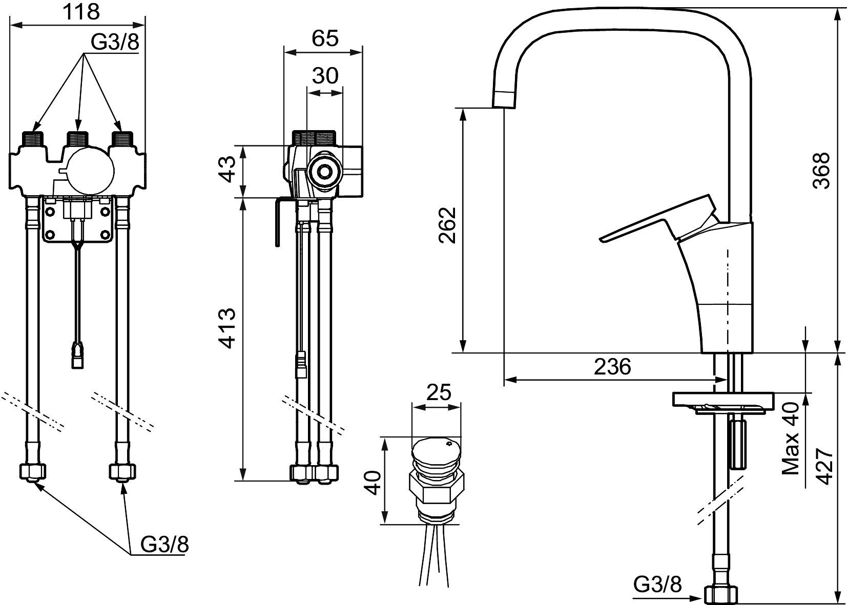 MORA CERA duo Spültisch Hybrid m. Hygienespülung Batterieb. mit Sensor Cr