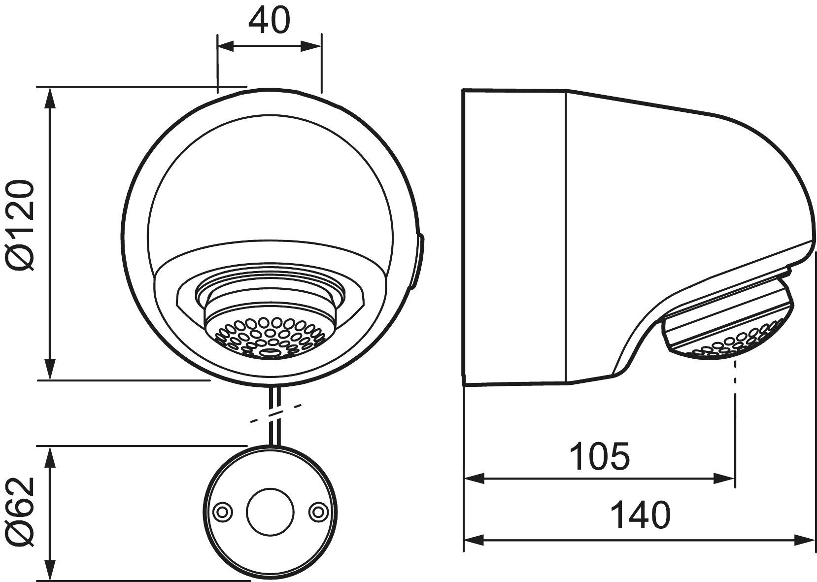 MORA tronic Compact Duschkopf WMS, m. Thermostat, Anschluss von hinten, Netzbetrieb