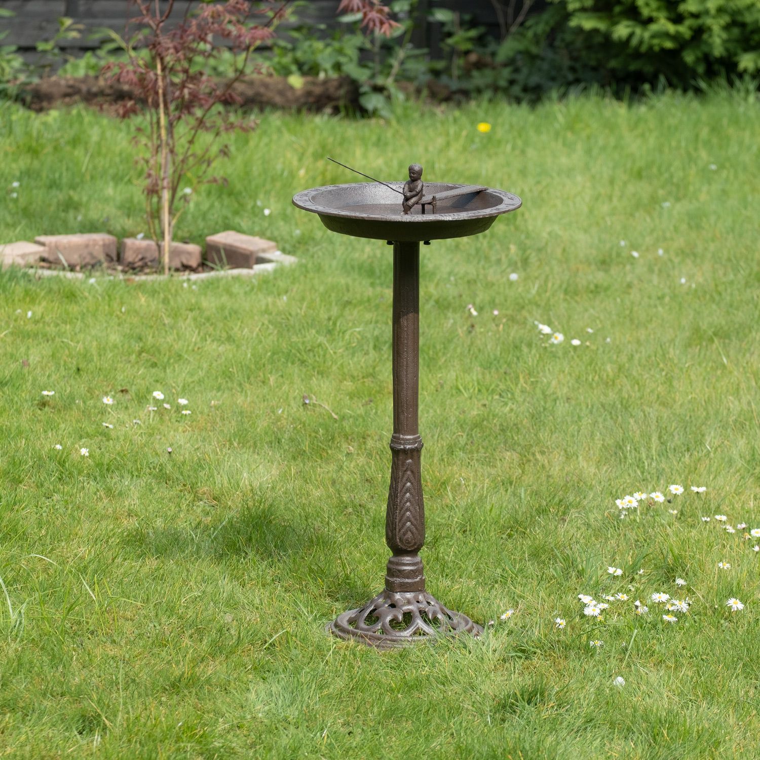 Moritz 2in1 Vogeltränke und Sonnenuhr Ø 36 x 76 cm Gusseisen Wildvogeltränke Vogelbad