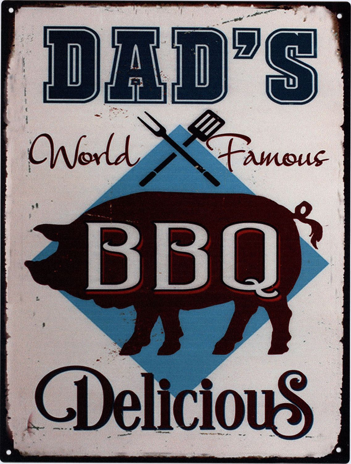Moritz Blechschild Dad´s BBQ Schwein 25 x 33 cm Retro Vintage Tin sign Wand