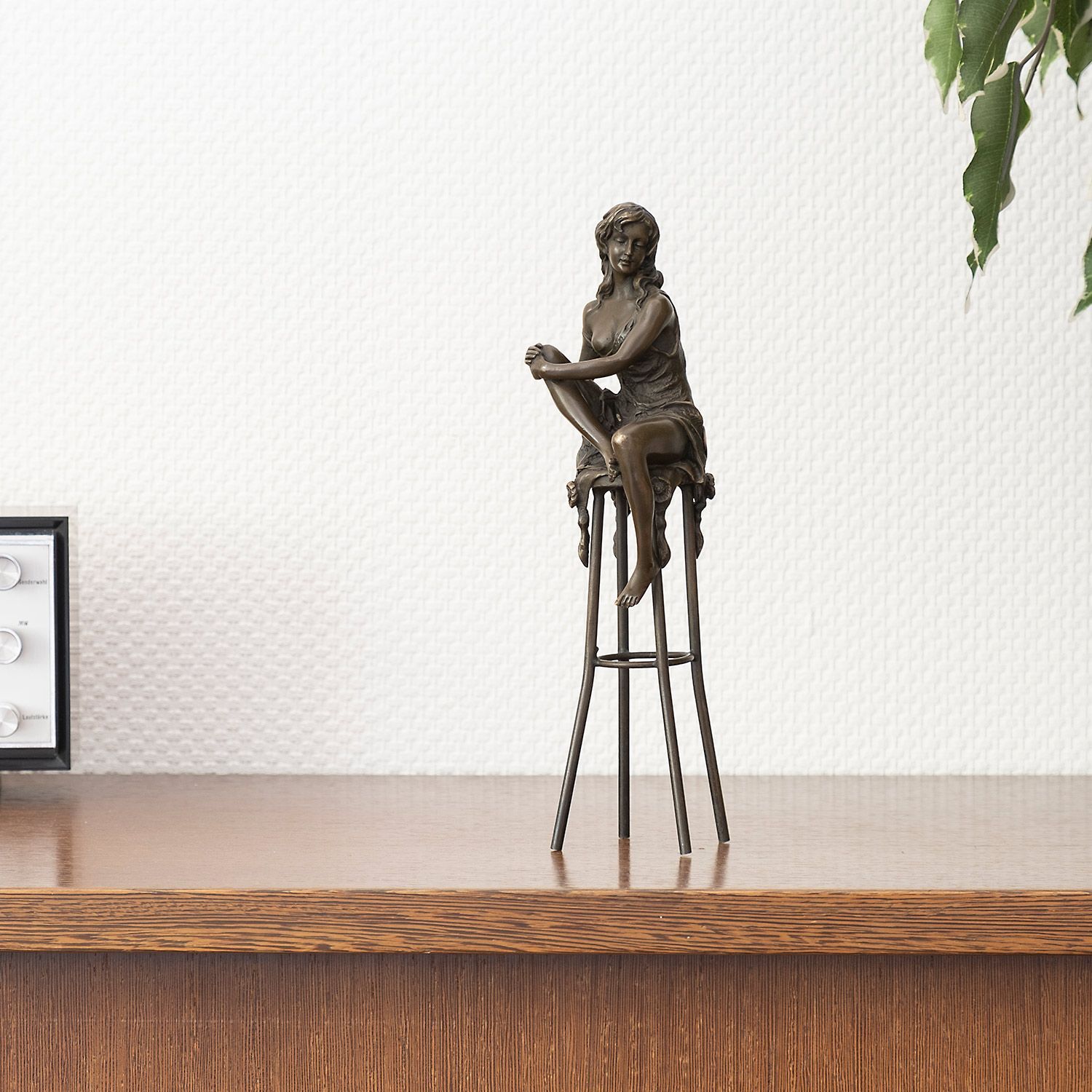 Moritz Bronzefigur Frau sitzt auf einem Barhocker Höhe 27,5 cm 0,8 kg Skulptur Statue