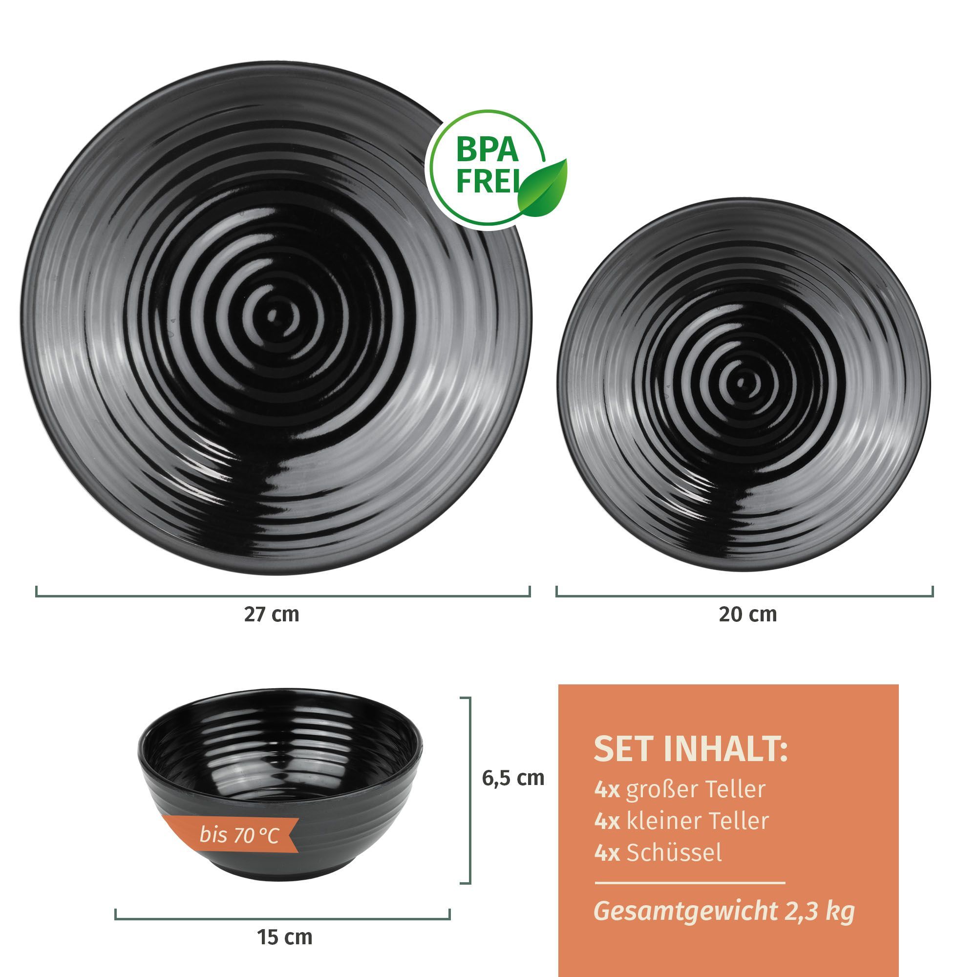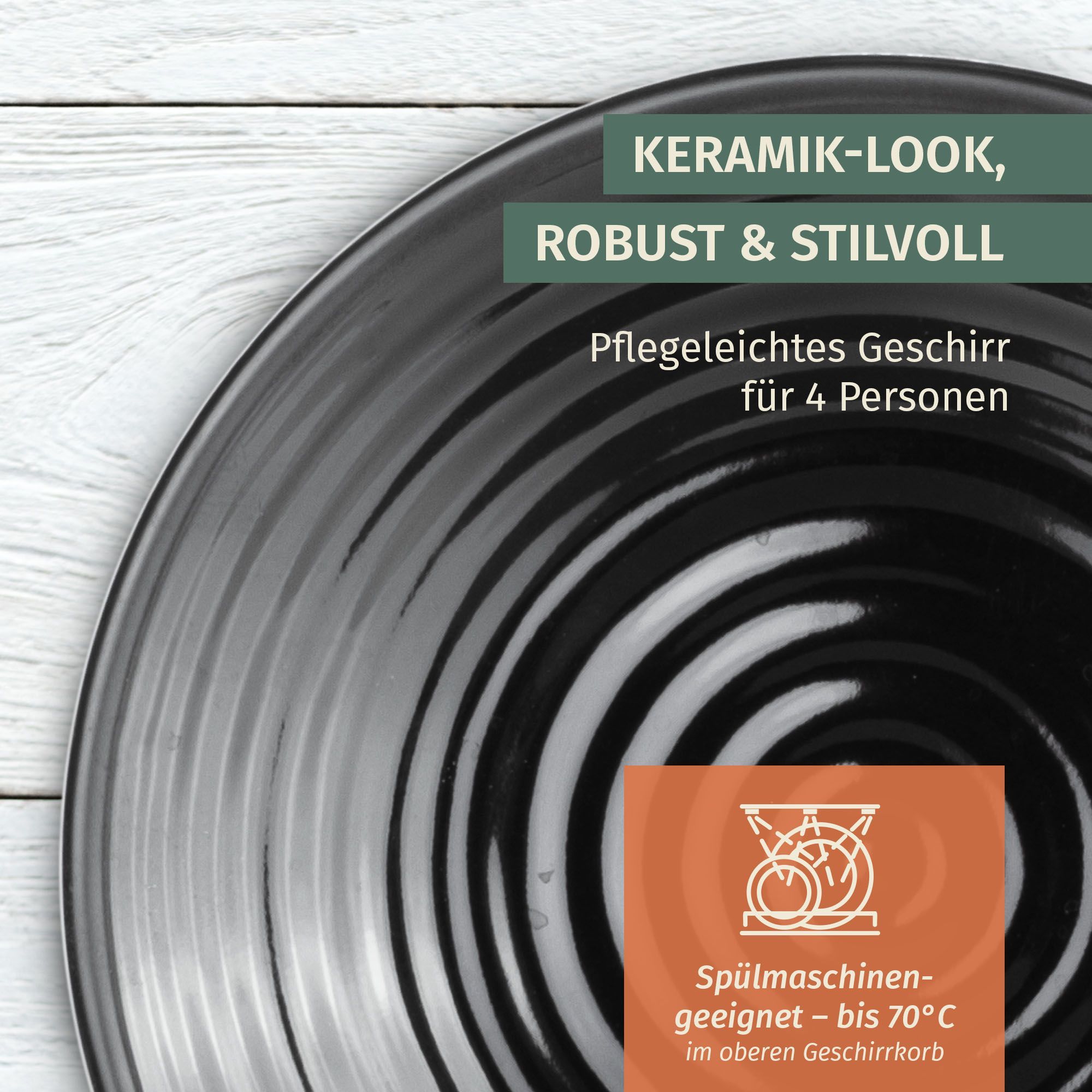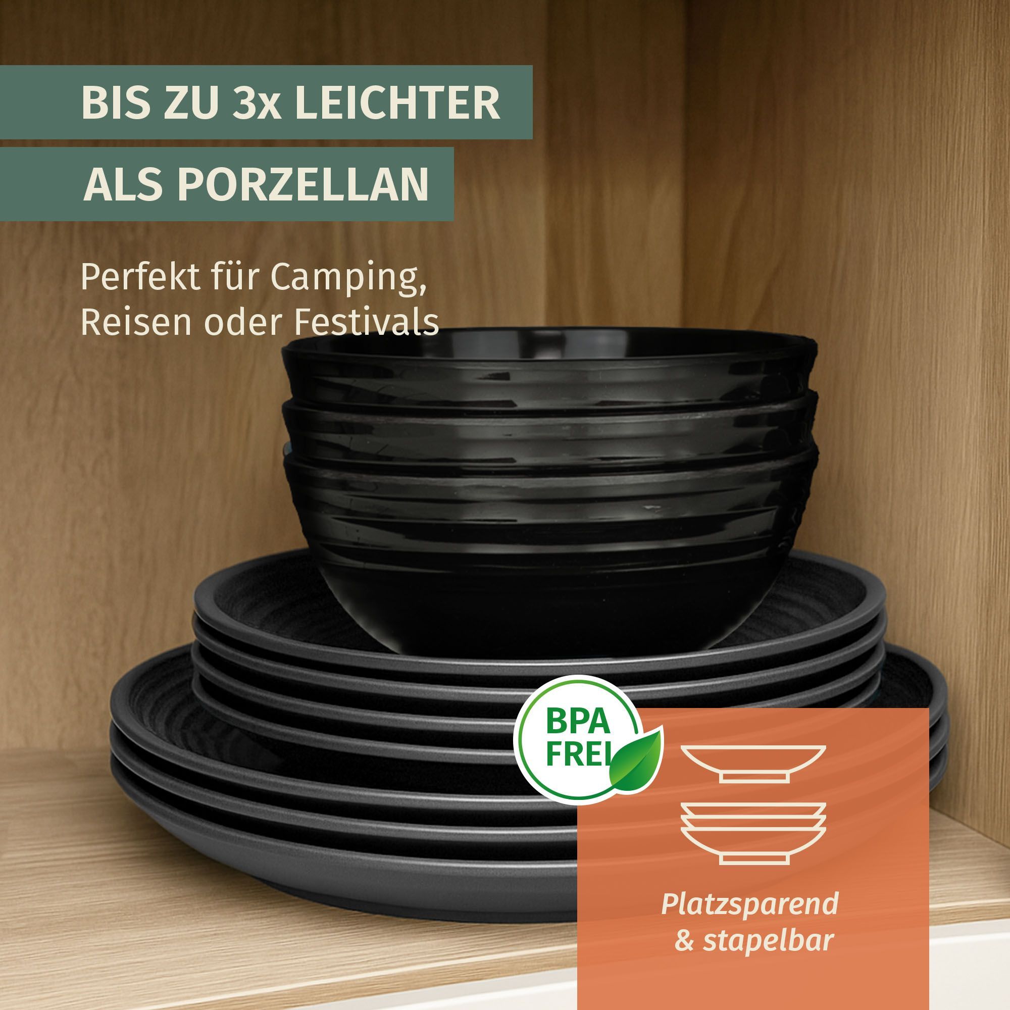 Moritz Camping Tafelgeschirr aus Melamin für 4 Personen 12-teilig | spülmaschinenfest