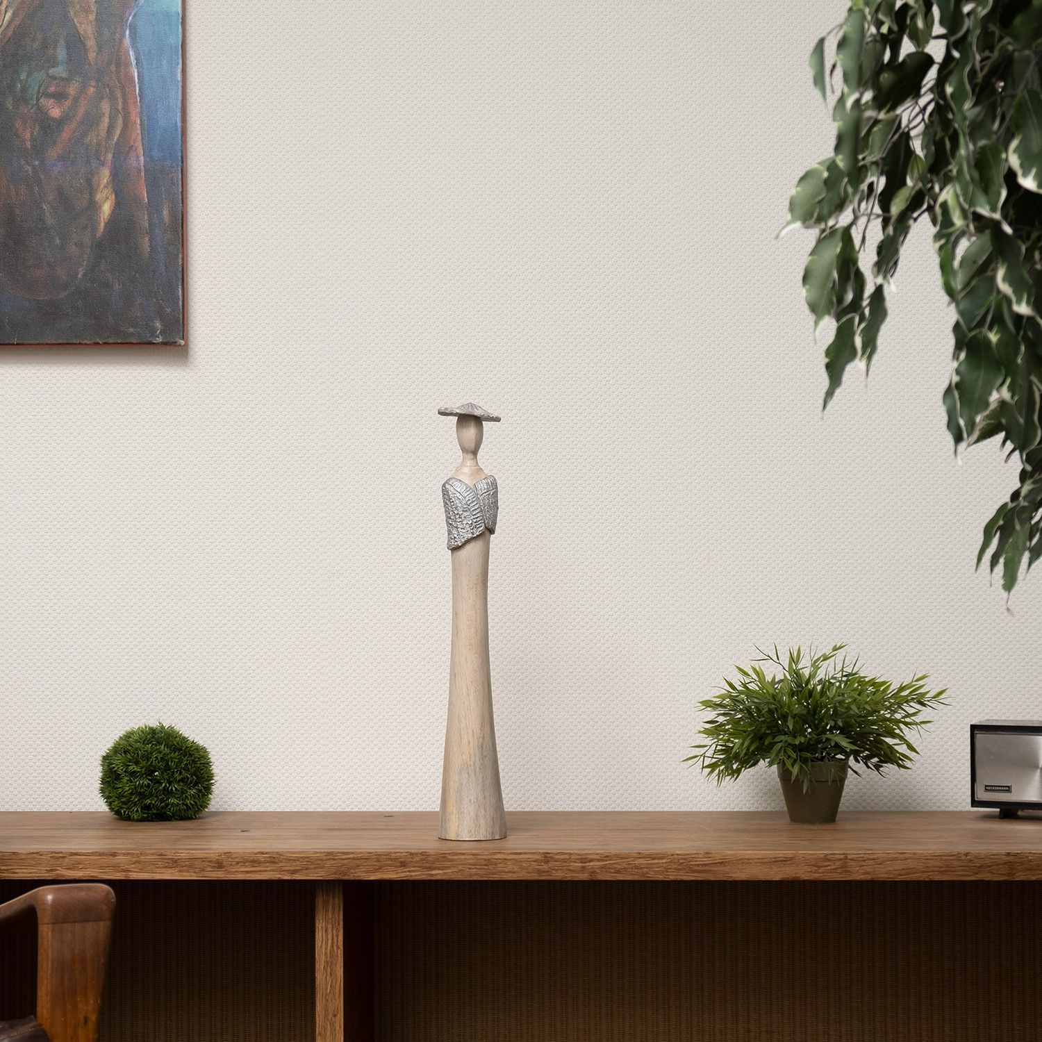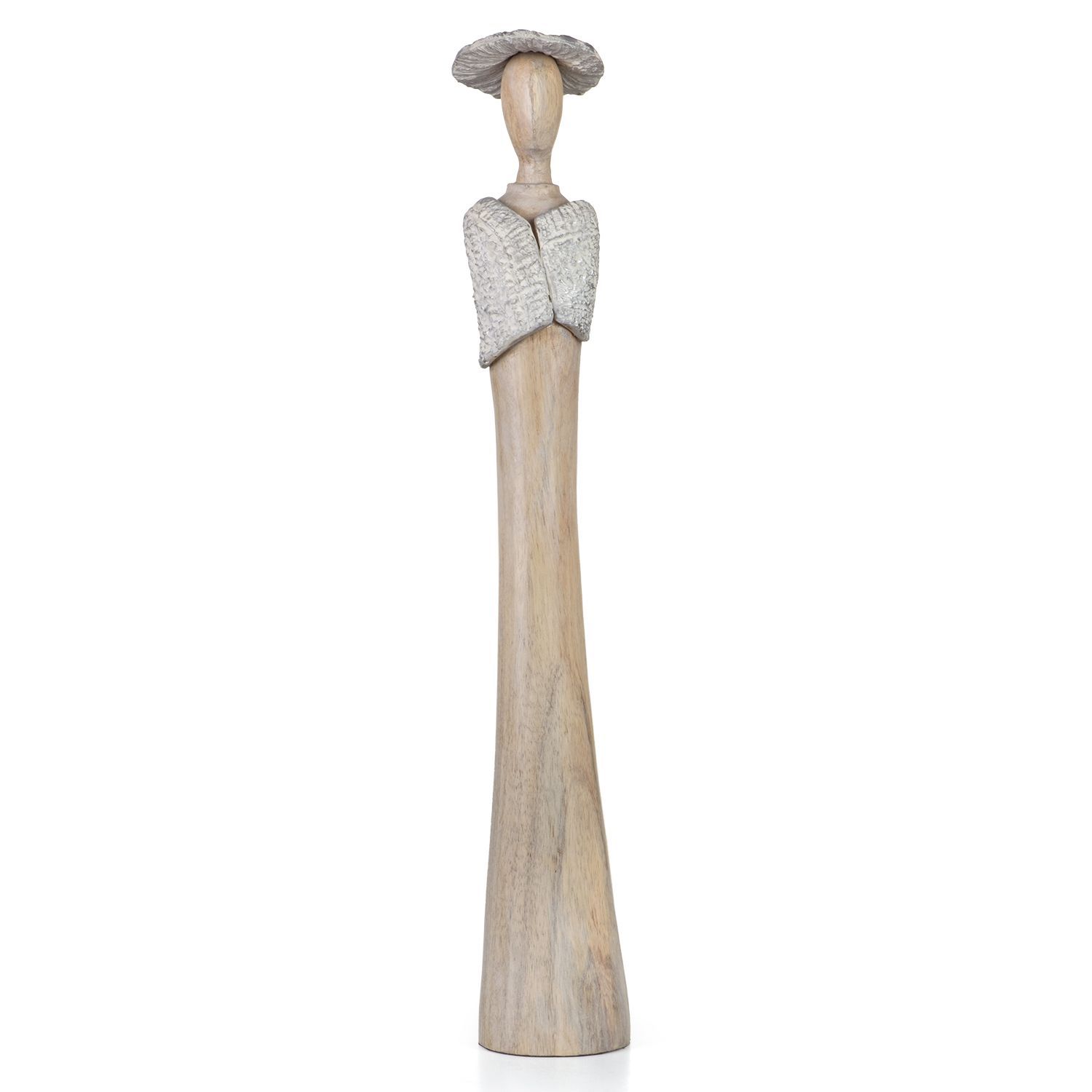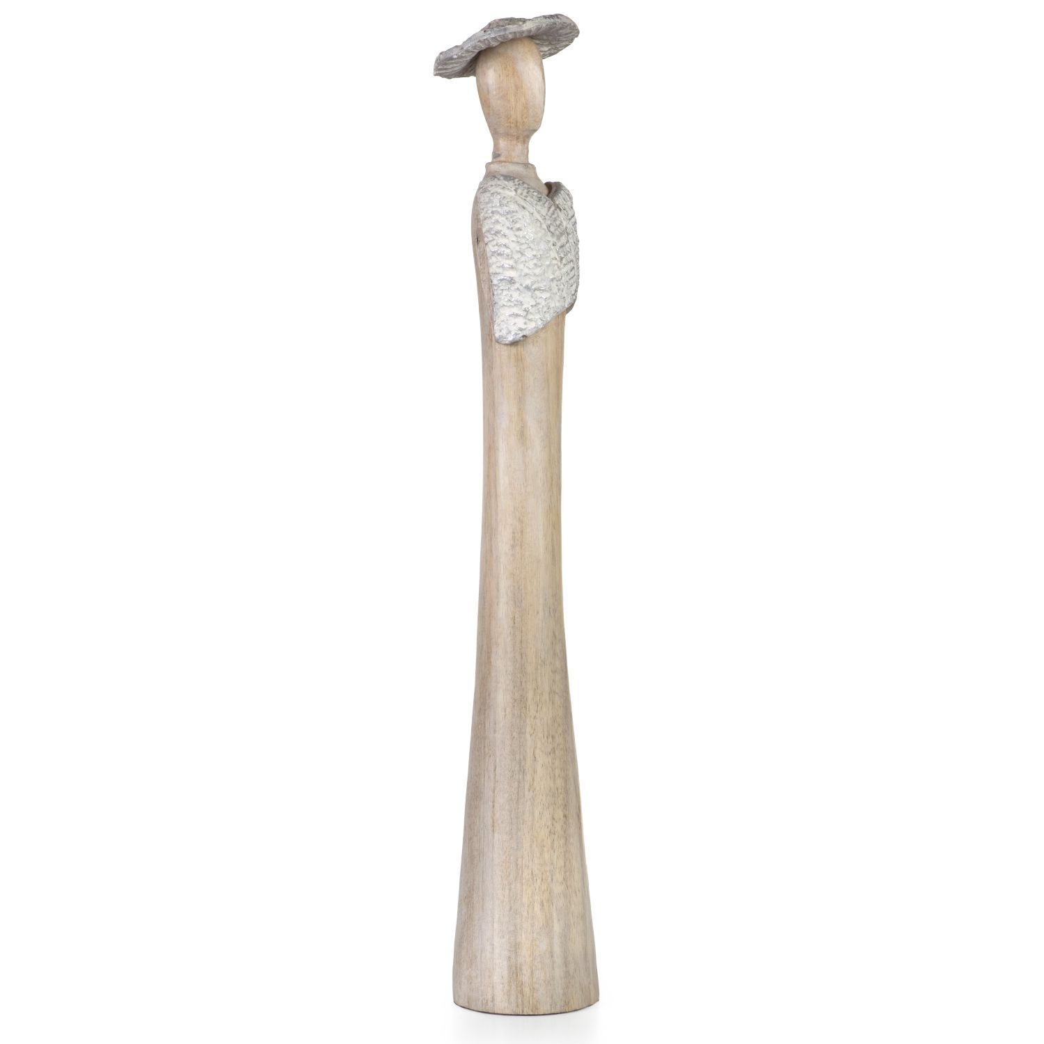 Moritz Dame Lady mit Hut 9 x 9 x 58 cm massives Mangoholz Handarbeit weiß natur 3