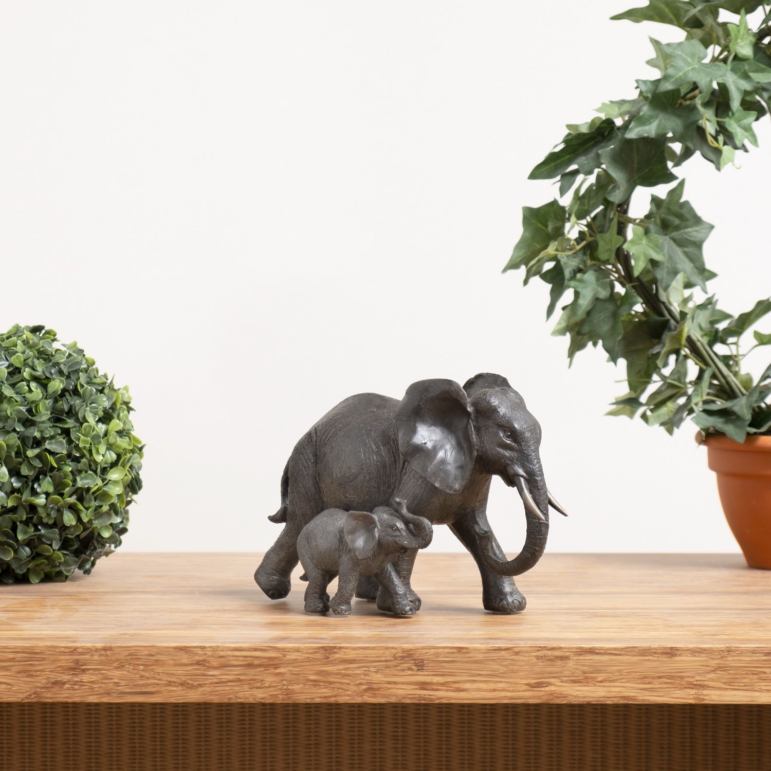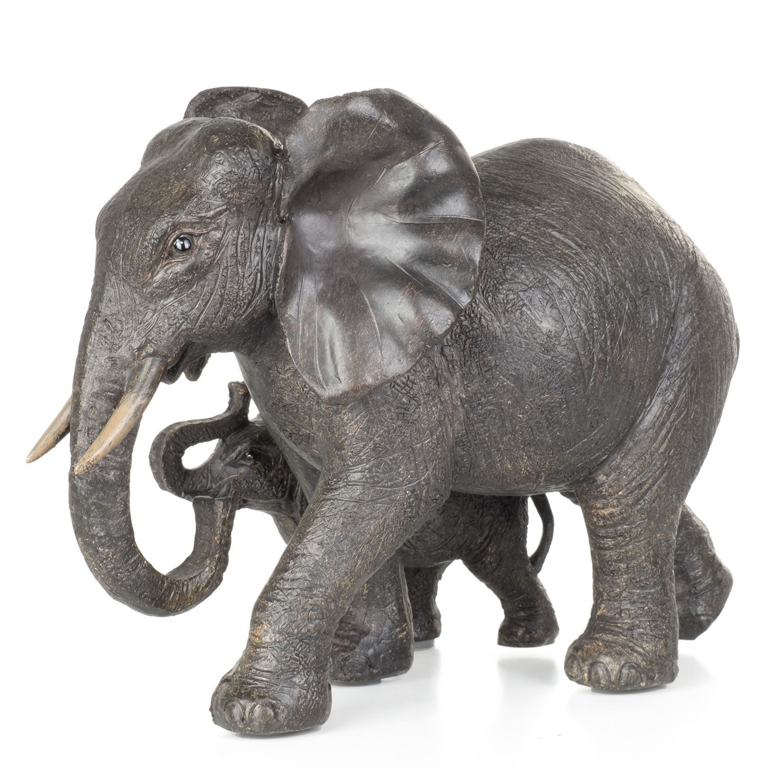 Moritz Deko-Figur Elefantenmutter mit Kind spazieren aus Polyresin dunkelbraun