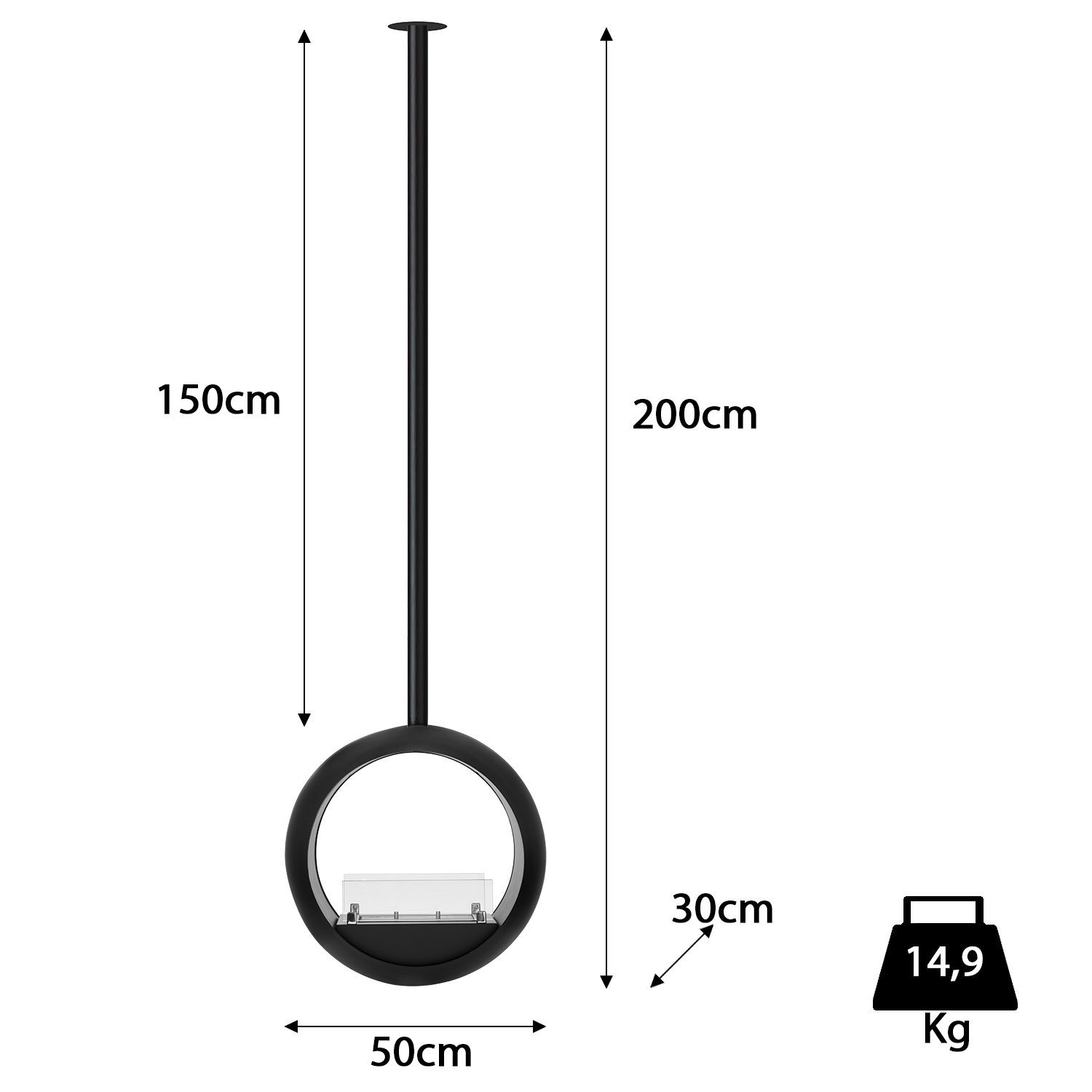Moritz Ethanol Deckenkamin 200 x 50 x 30 cm schwarz 1,2 L Dekokamin Echtfeuer Kamin
