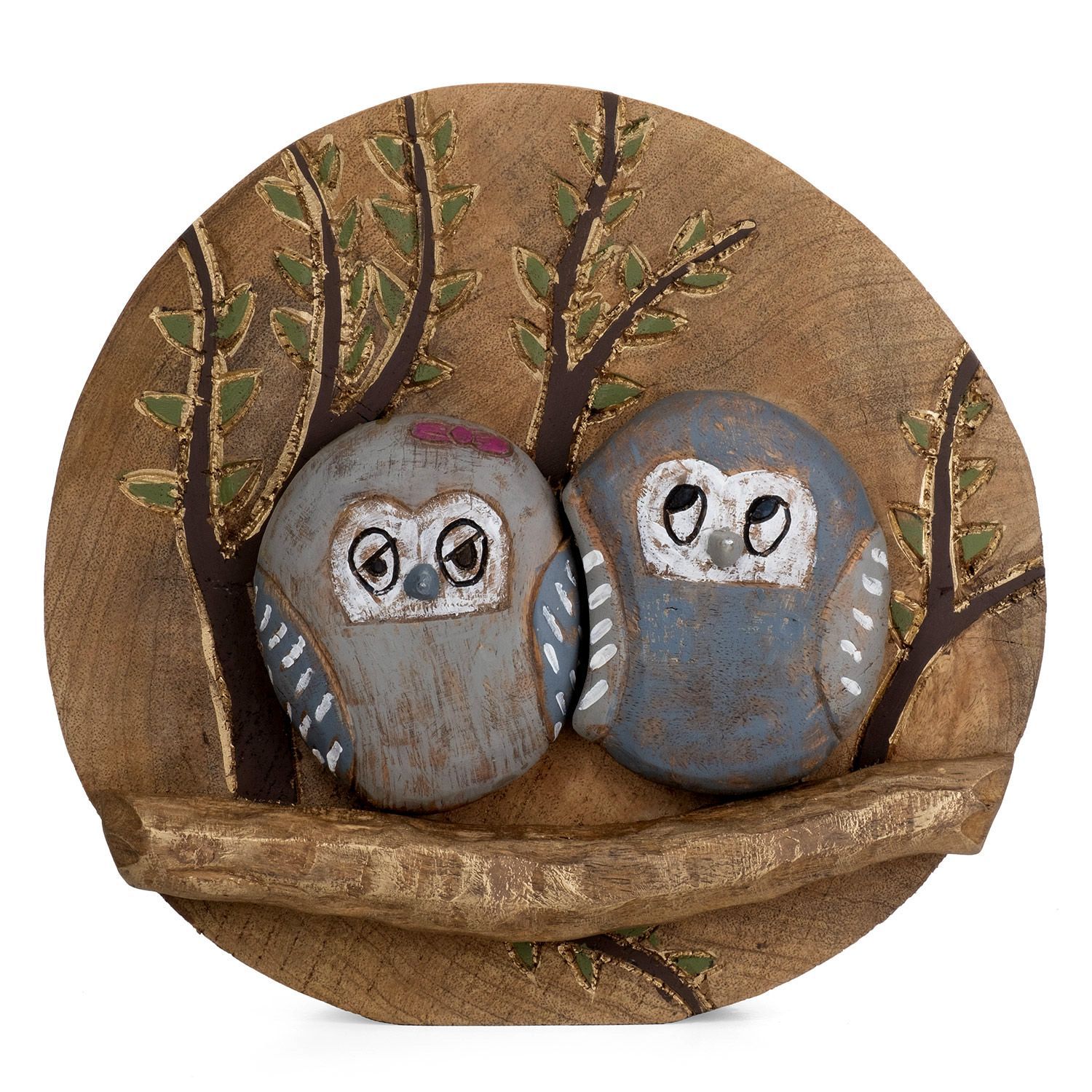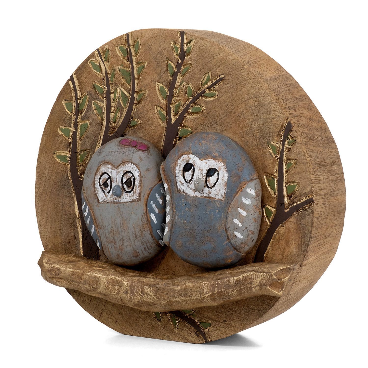 Moritz Eulen Deko Eulenfigur 29x28x10 cm Eulen Figuren Skulptur Eulenpärchen aus Holz