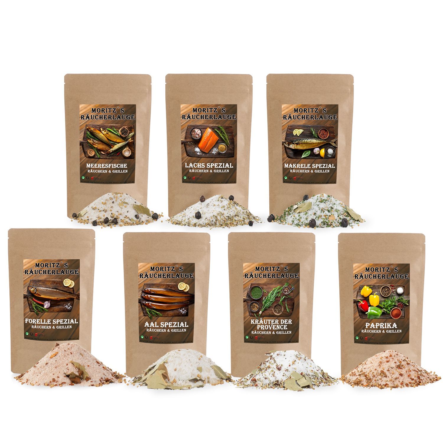 Moritz`s Räucherlauge Set Forelle, Aal, Kräuter, Paprika, Lachs, Makrele, Meeresfi