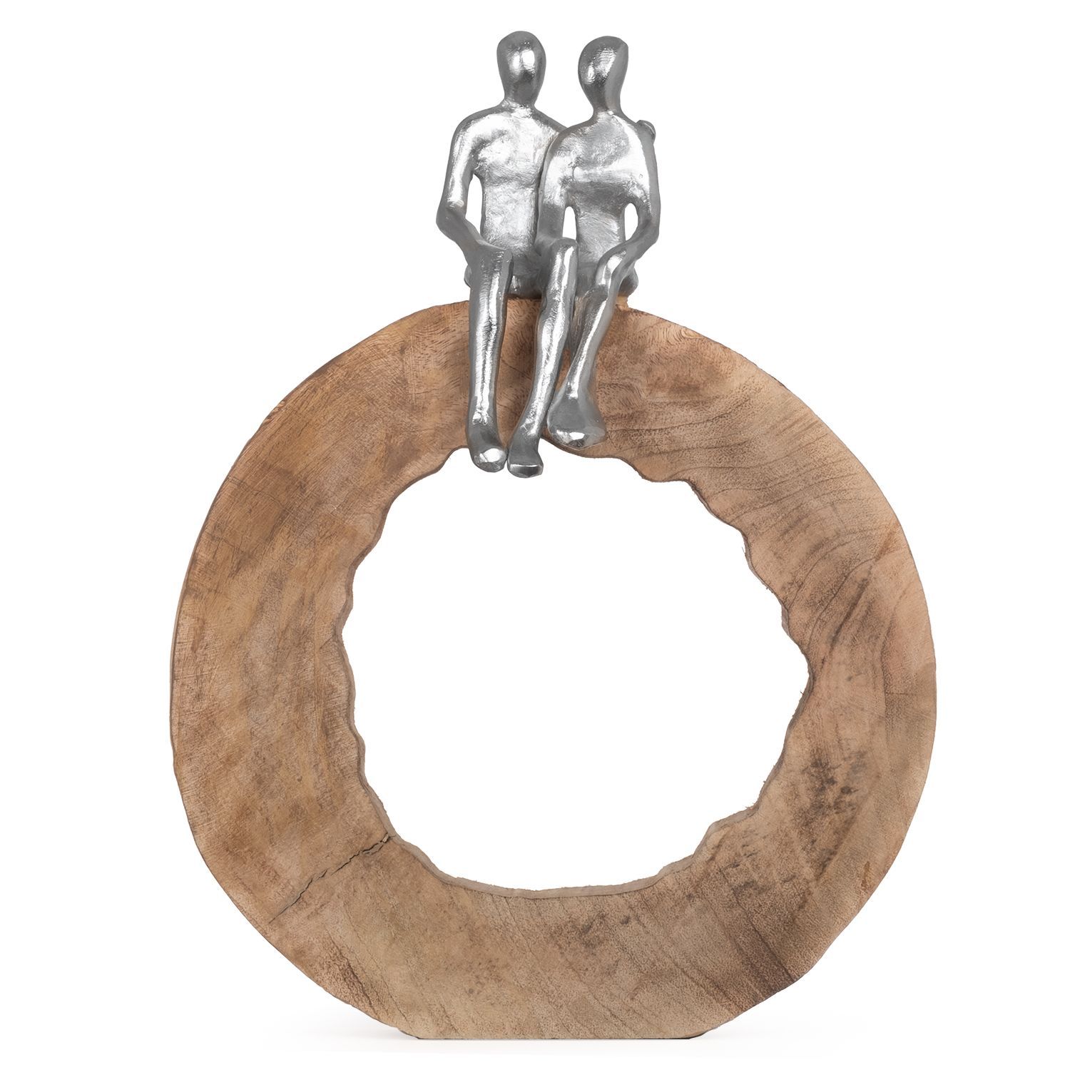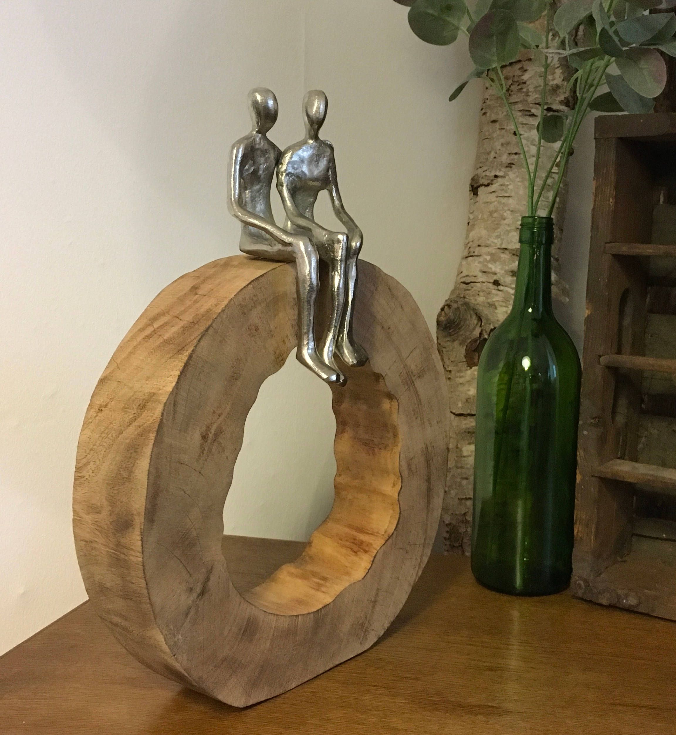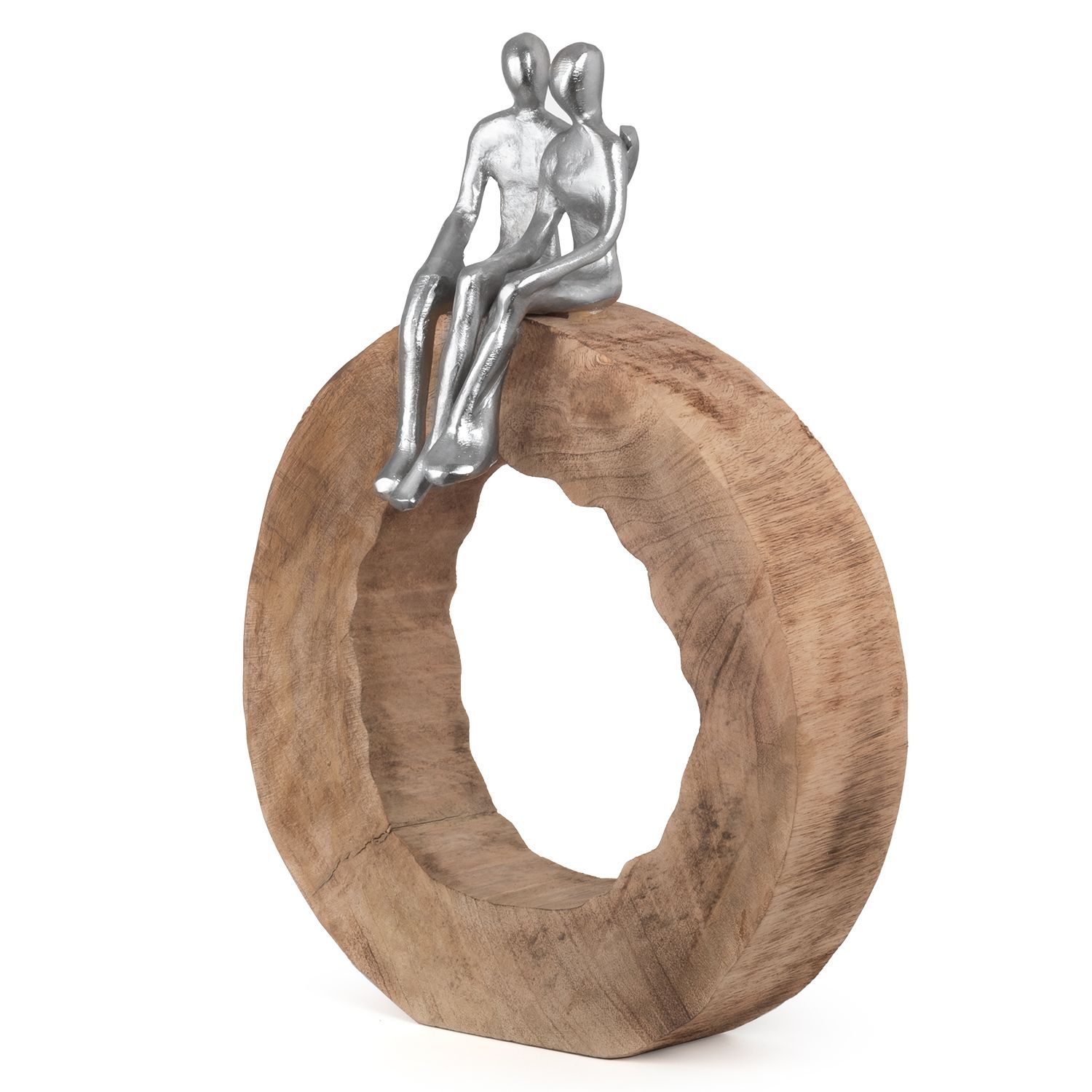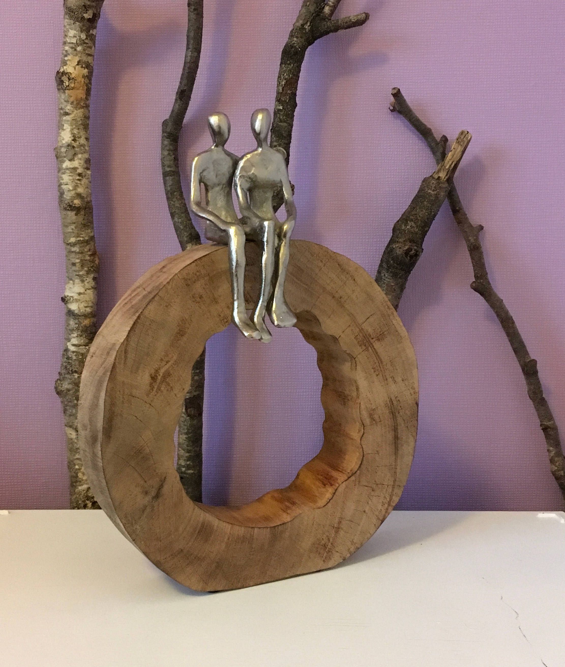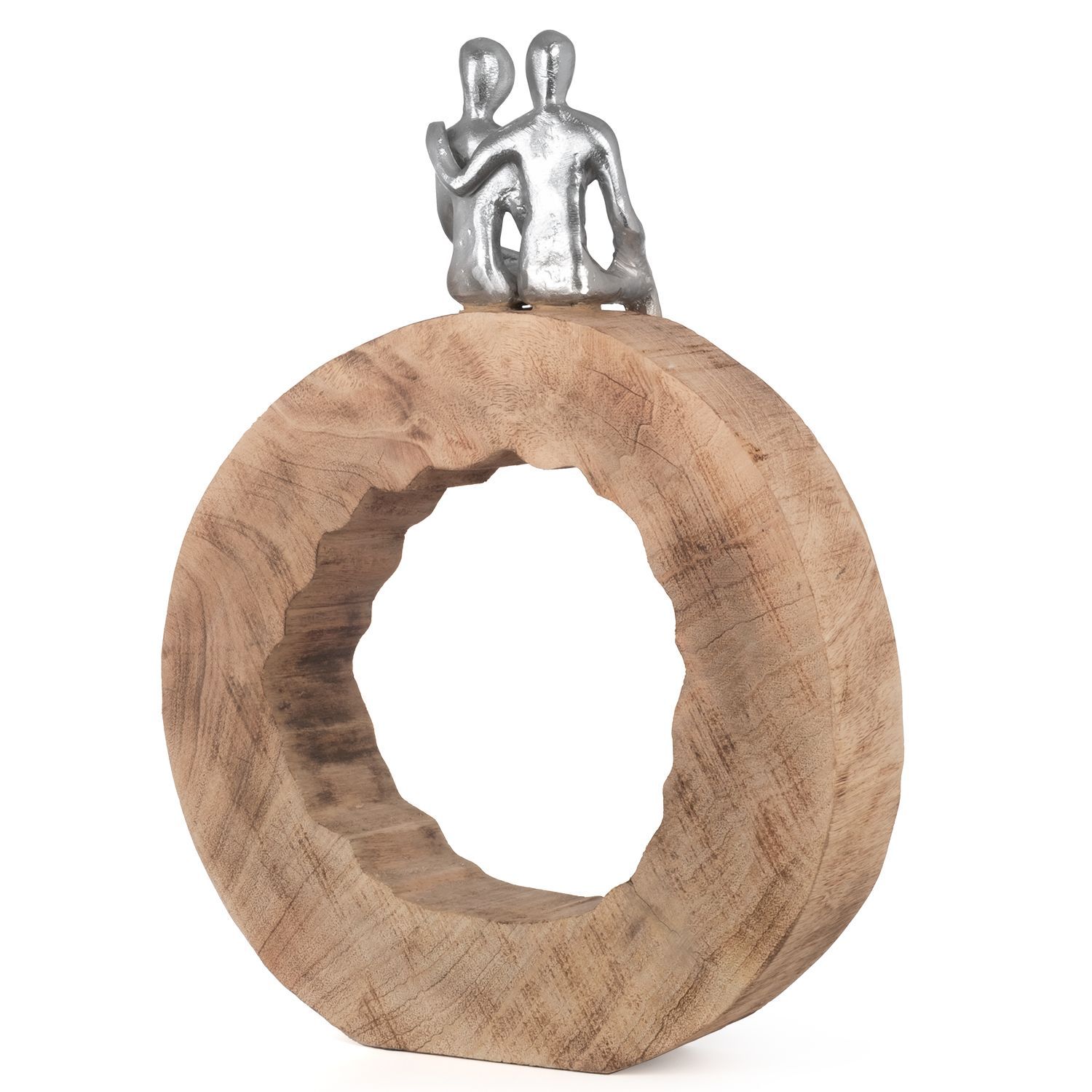 Moritz Skulptur Be Together 39x28x6 cm Mangoholz - Baumscheibe Handarbeit silber