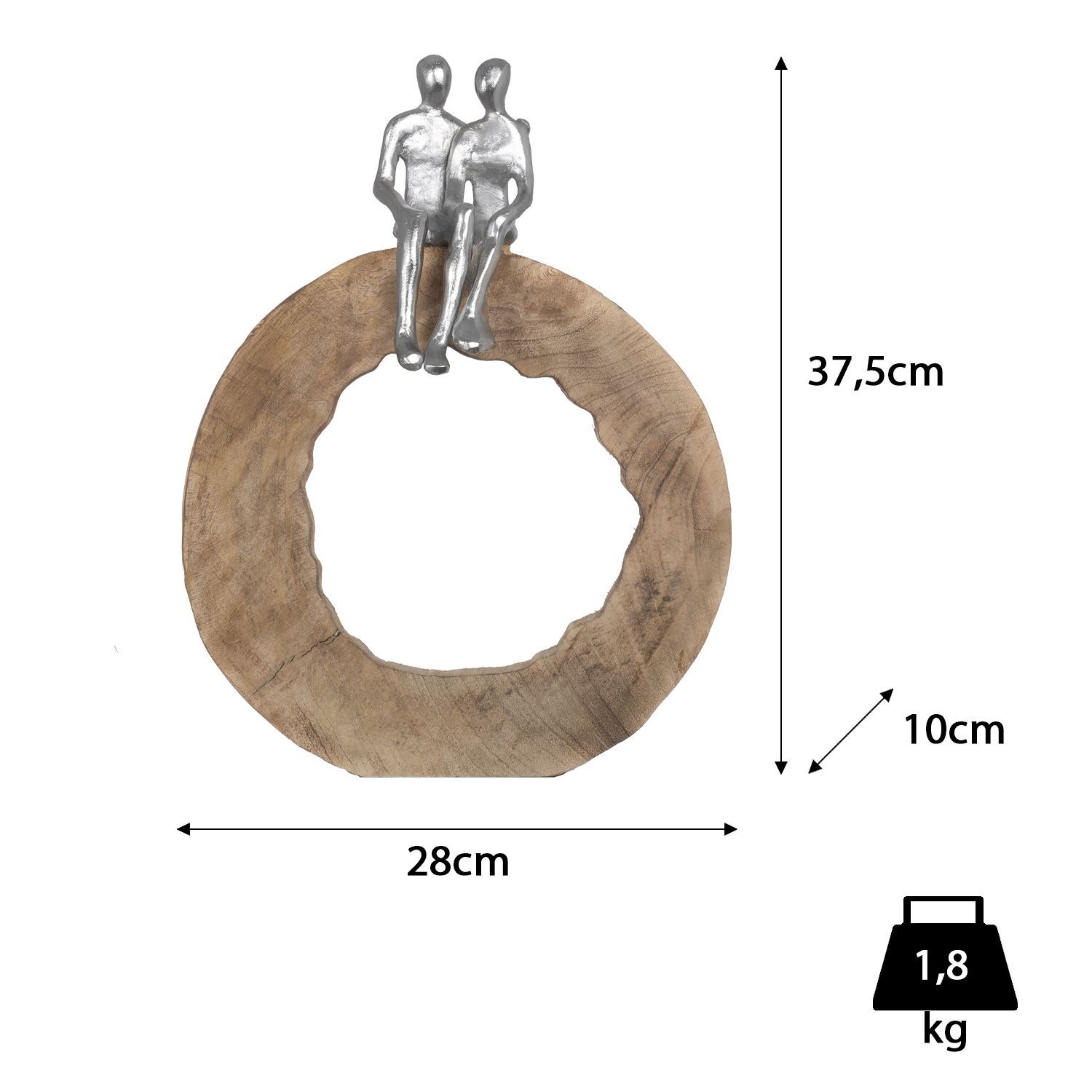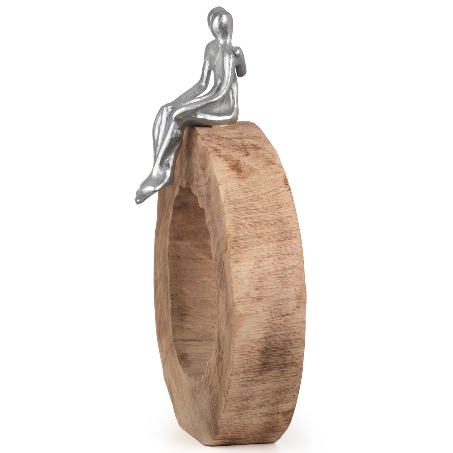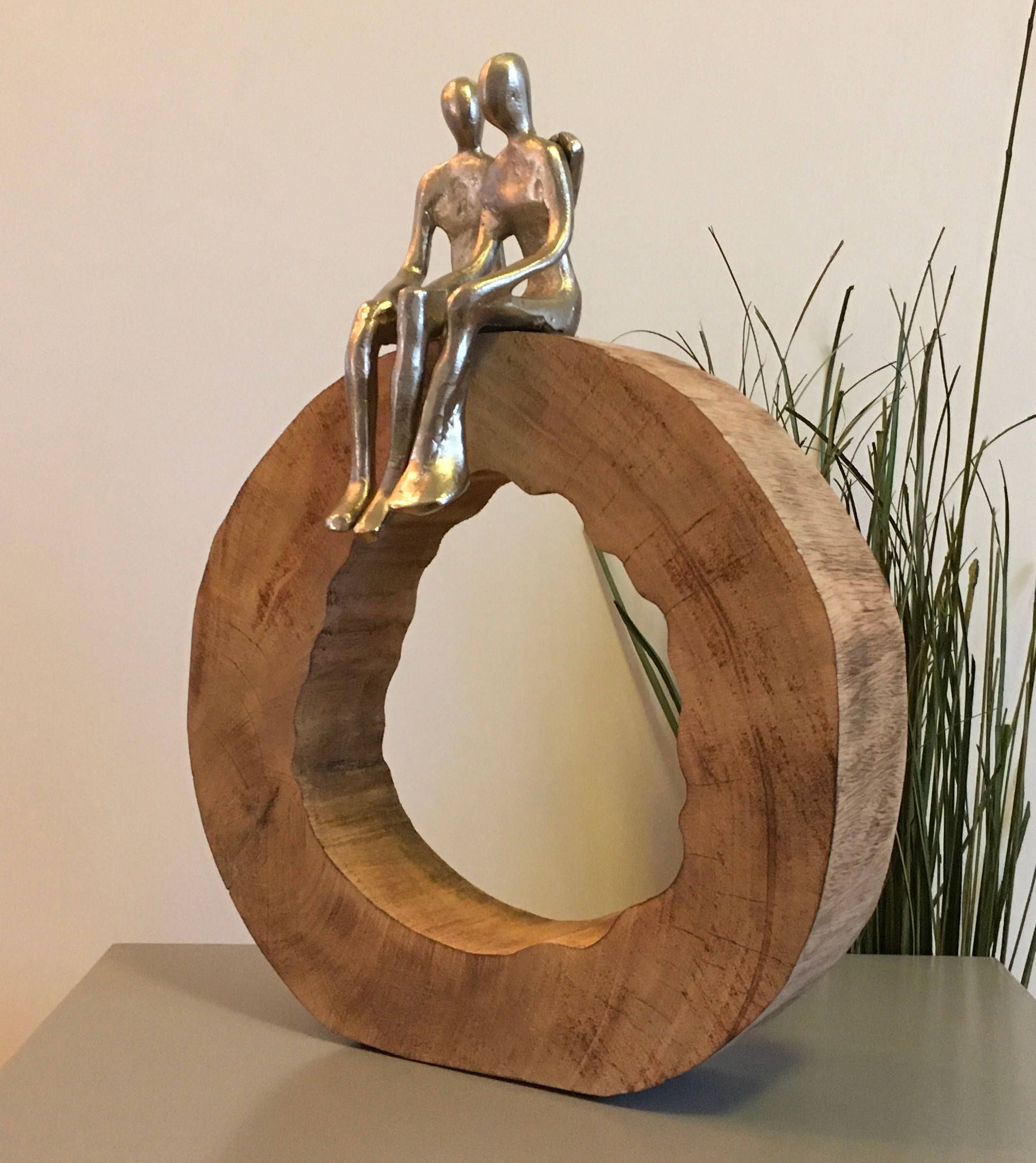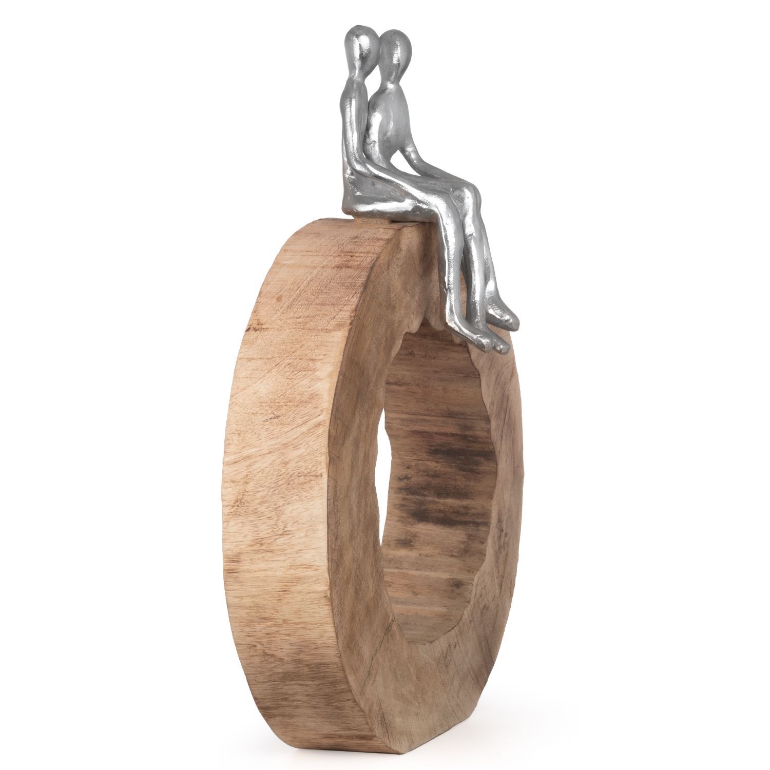 Moritz Skulptur Be Together 39x28x6 cm Mangoholz - Baumscheibe Handarbeit silber