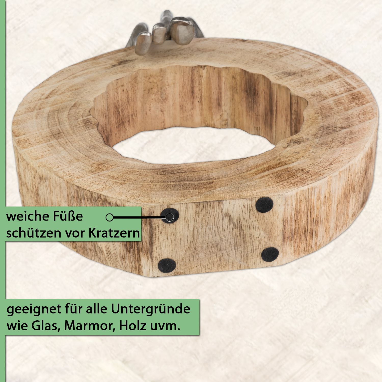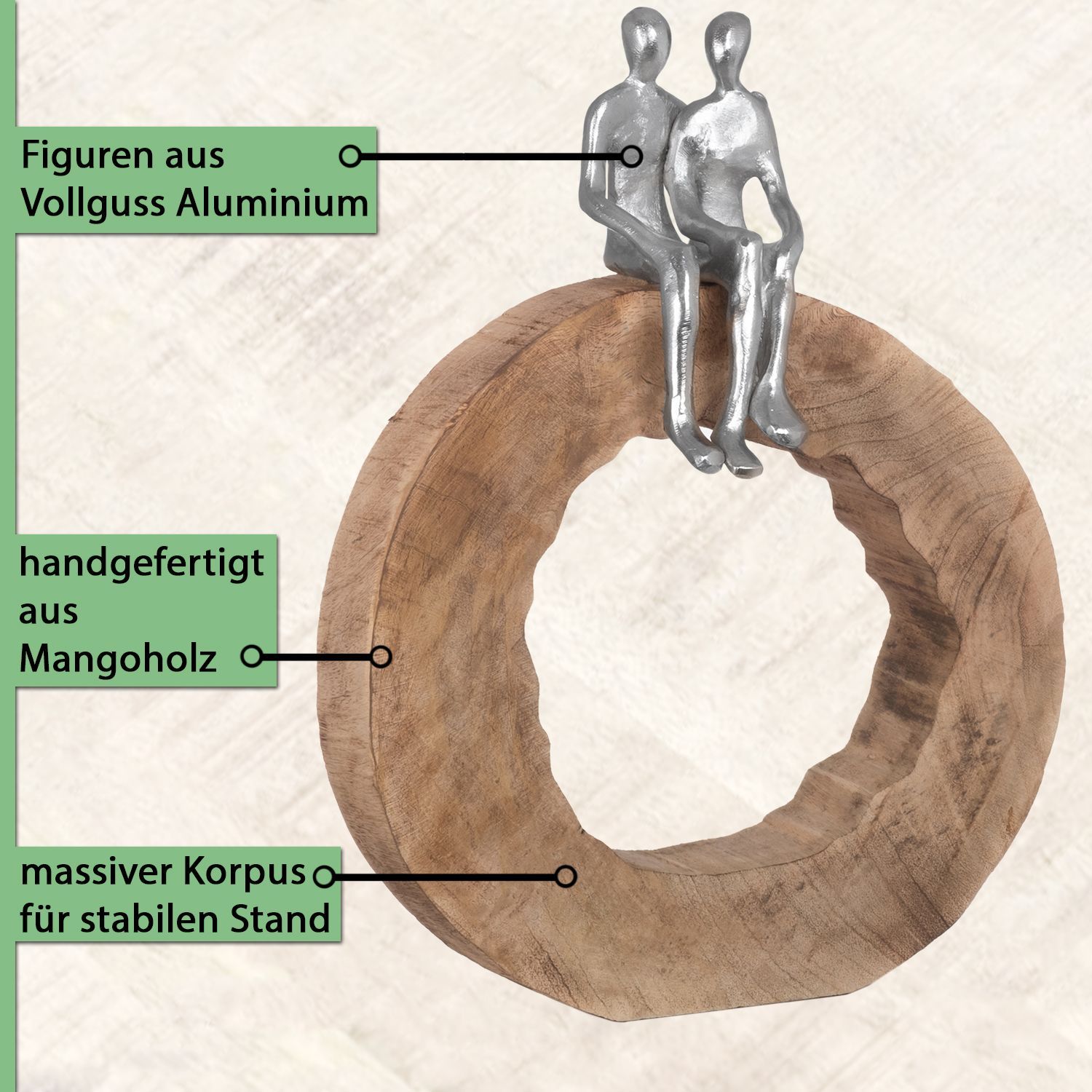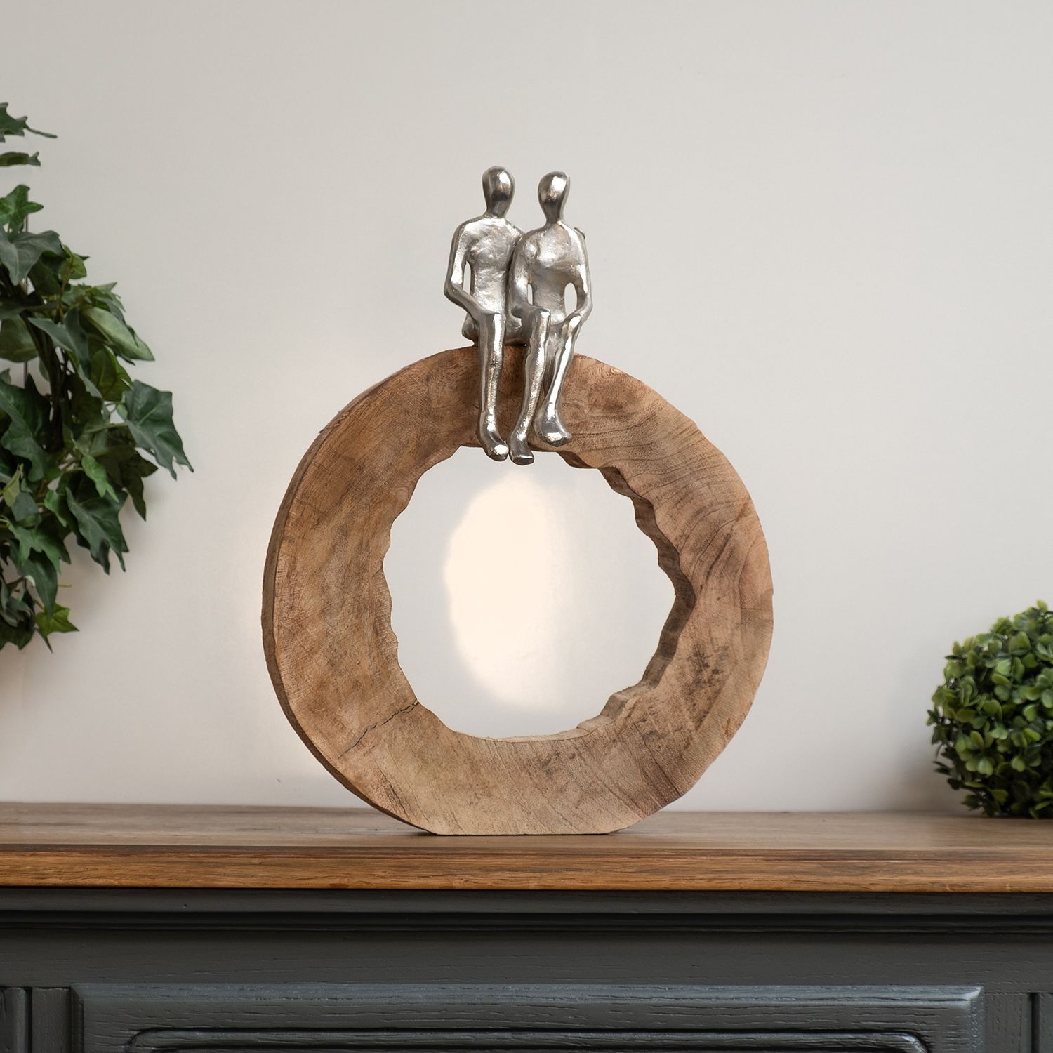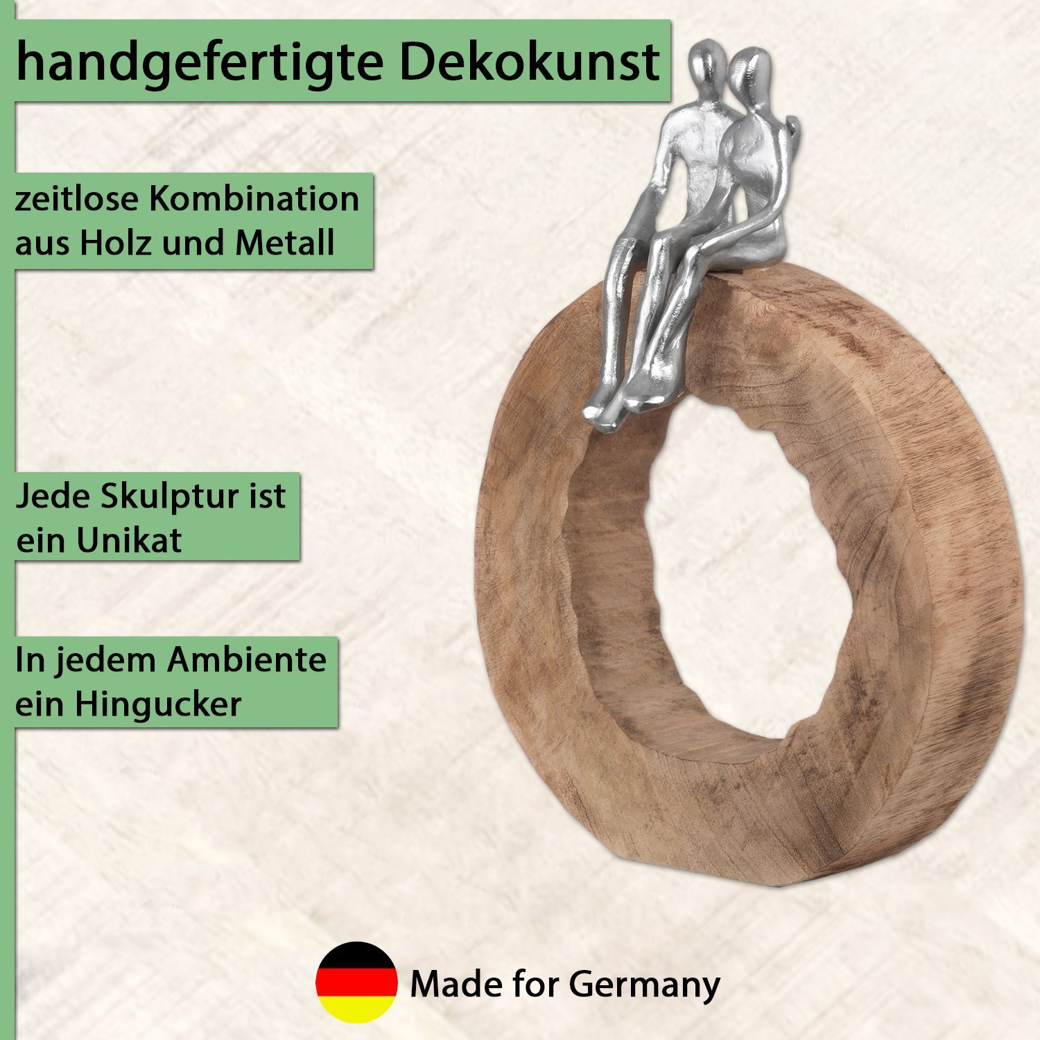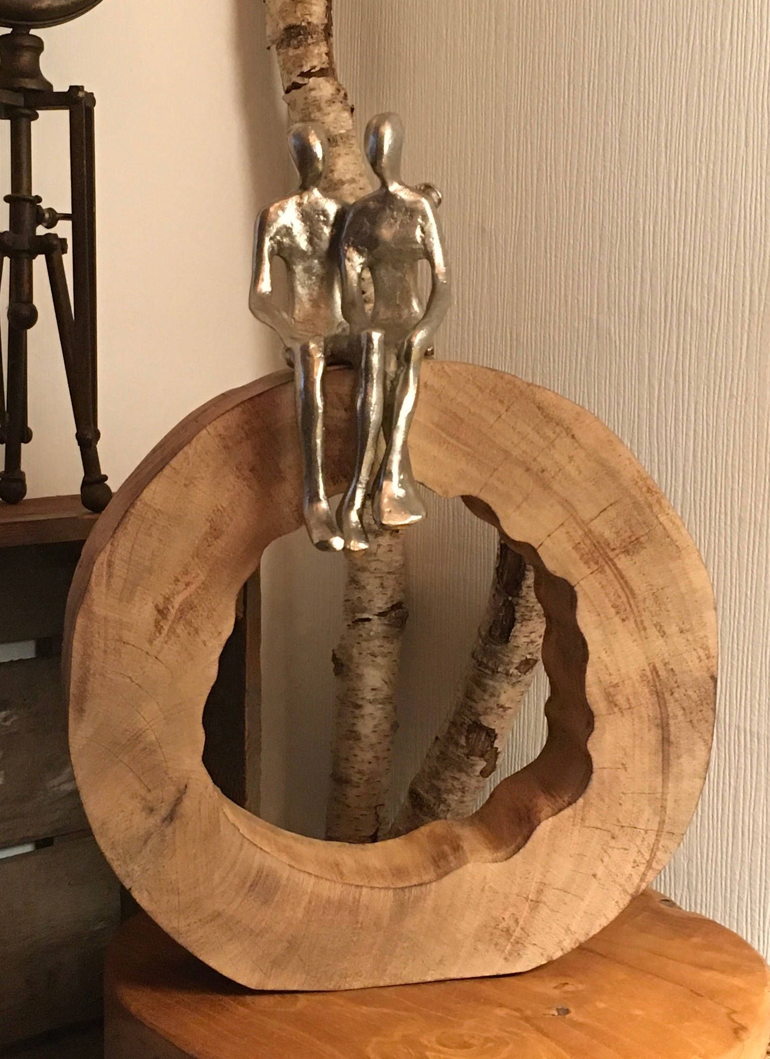 Moritz Skulptur Be Together 39x28x6 cm Mangoholz - Baumscheibe Handarbeit silber