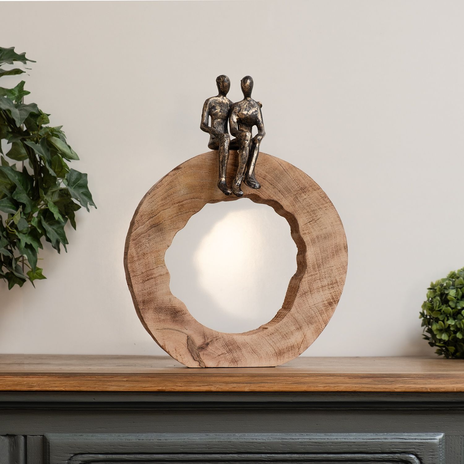 Moritz Skulptur Be Together Mangoholz Baumscheibe Handarbeit Schwarz Gold