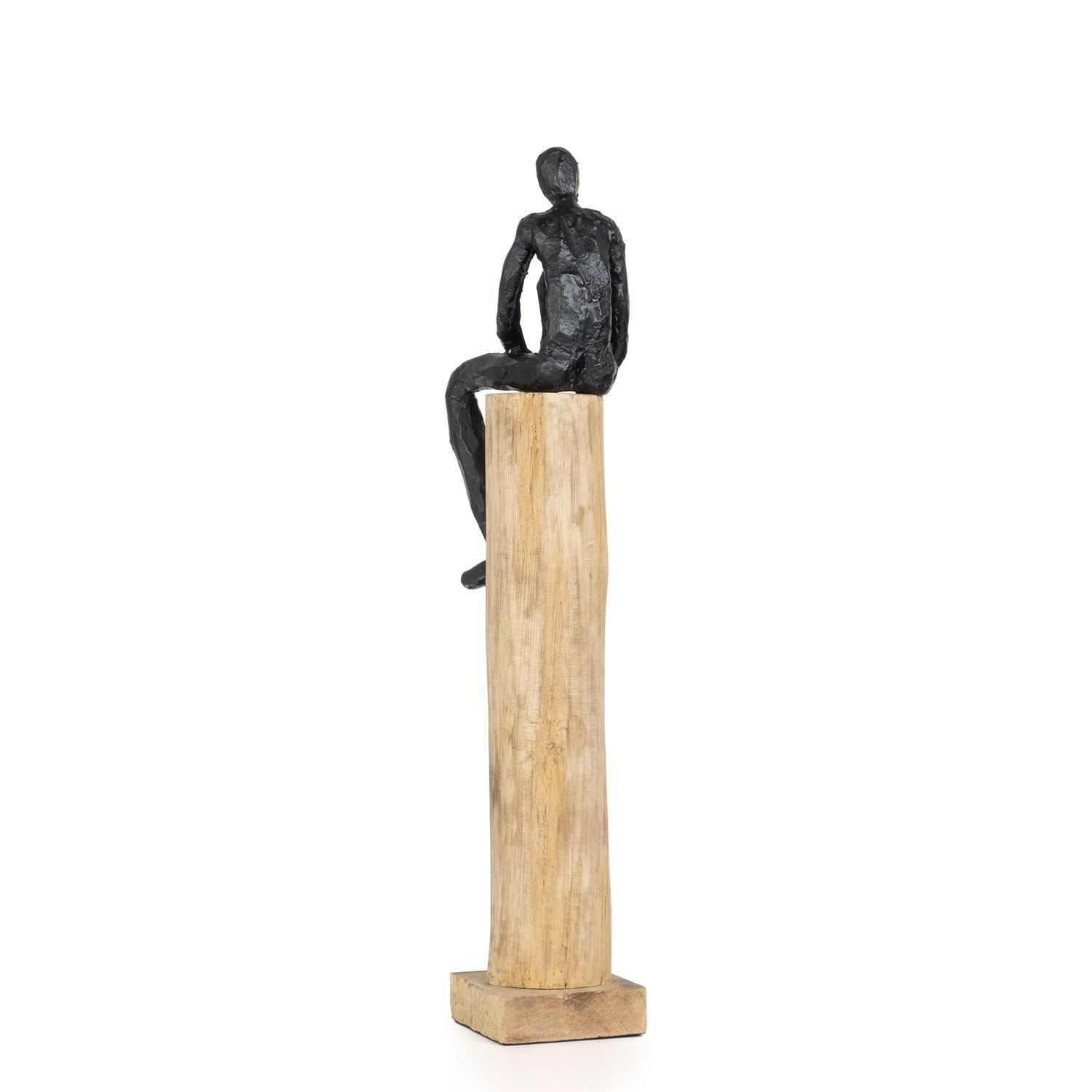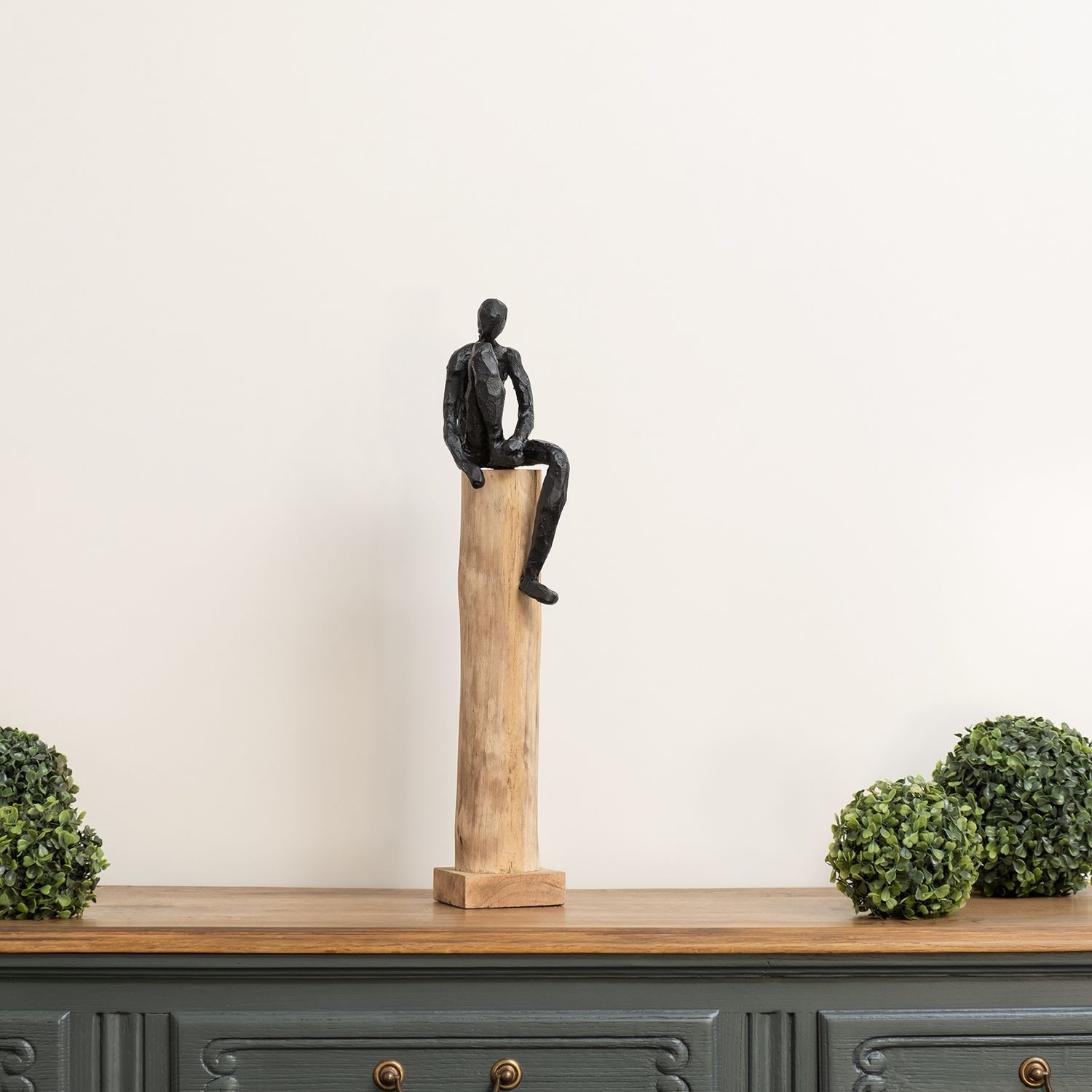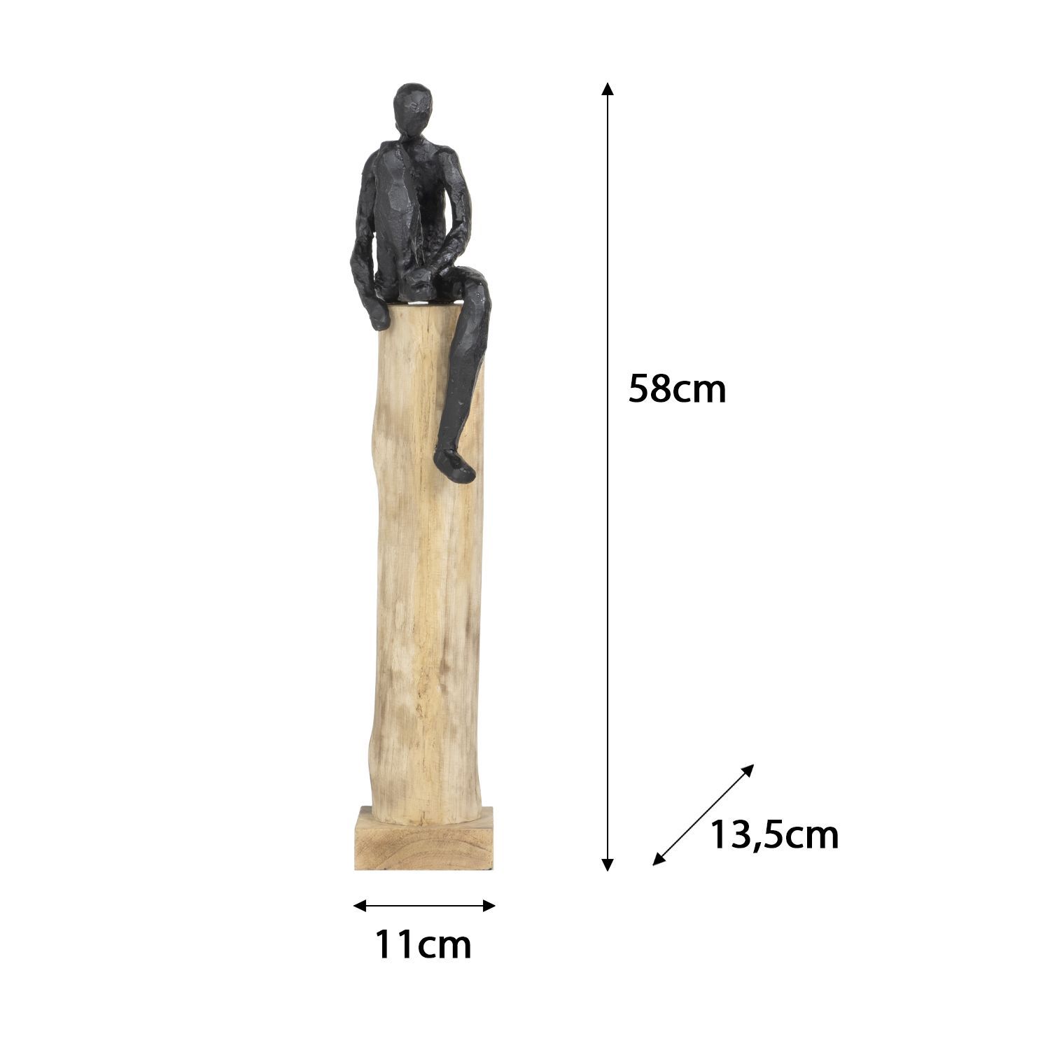 Moritz Skulptur Mann sitzend auf Stamm klein 13,5 x 11 x 58 cm Holzdeko Wohnzimmer