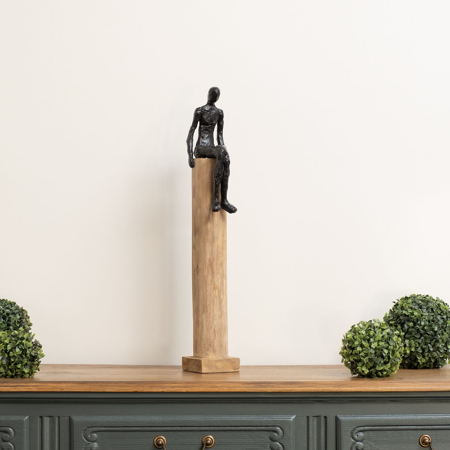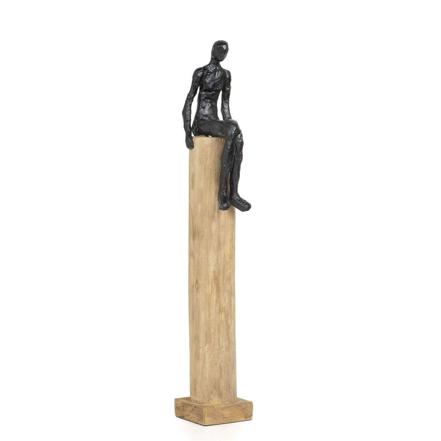 Moritz Skulptur Mann sitzend auf Stamm mittel 13 x 10,5 x 66 cm Holzdeko Wohnzimmer