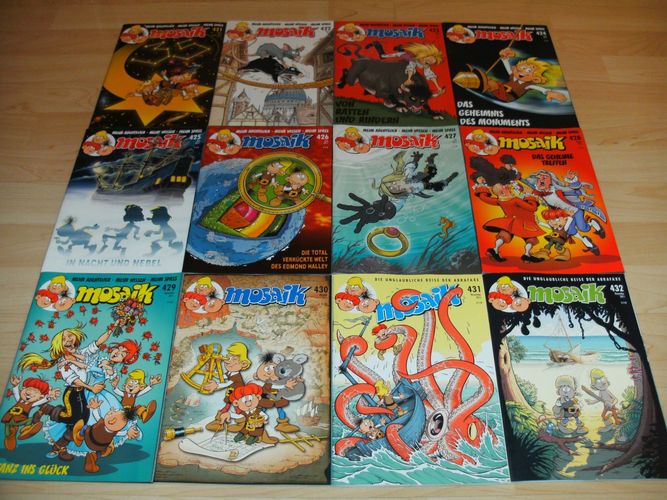12 Mosaikhefte mit den Abrafaxen, Heft-Nummern 421 bis 432, kompletter Jahrgang 2011, Zustand: Verlagsneu, ungelesen, ohne den kleinsten Makel, am Kiosk gekauft und in einer Schutzhülle unter Lichtverschluß aufbewahrt wie einen Schatz, versicherter Versand via DHL-Postpaket für 4,99 €, optimale