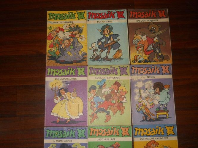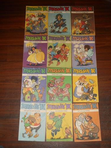 Verkauft wird Mosaik Hefte 1-12 1980, Abrafaxe Die Hefte sind gebraucht mit altersgemäße Abnutzungs- und Gebrauchserscheinungen. Die Hefte sind in ordentlichem Zustand -nicht bemalt -Heft 3 1980 kleiner Fleck Vorderseite, Heft 6 leichter Knick oben im Heft, Heft 7 an der Rückseite geklebt, Heft 11 D