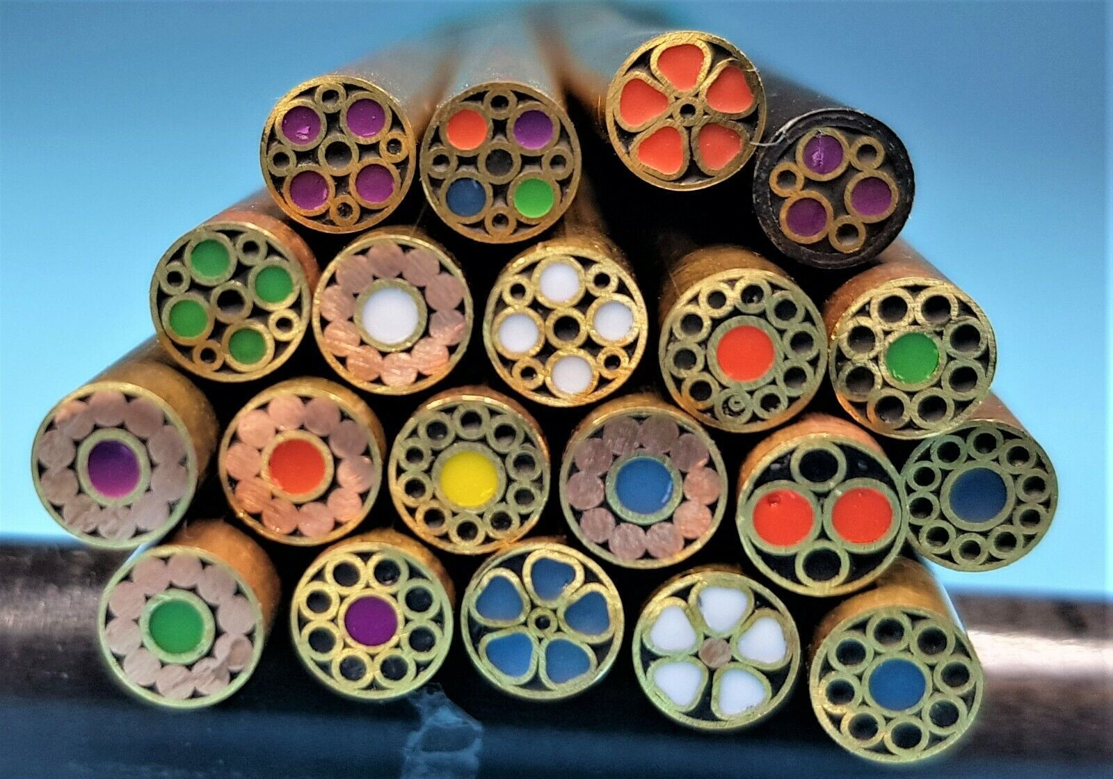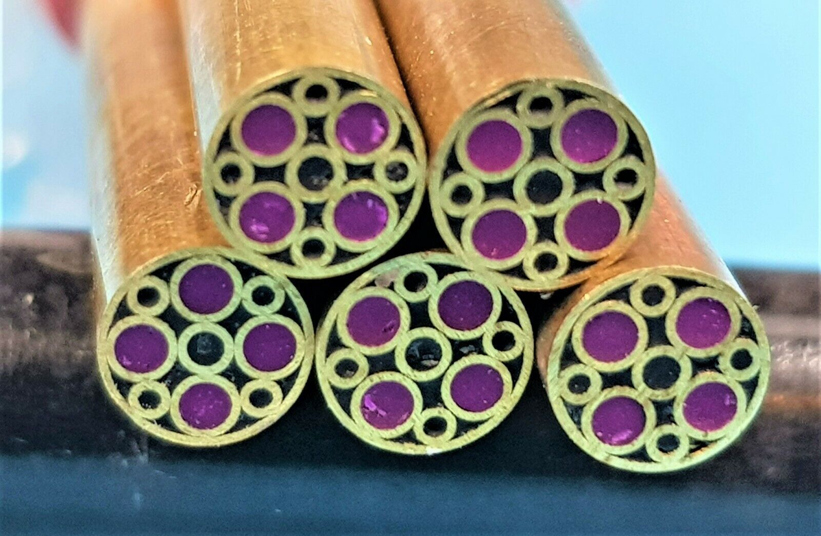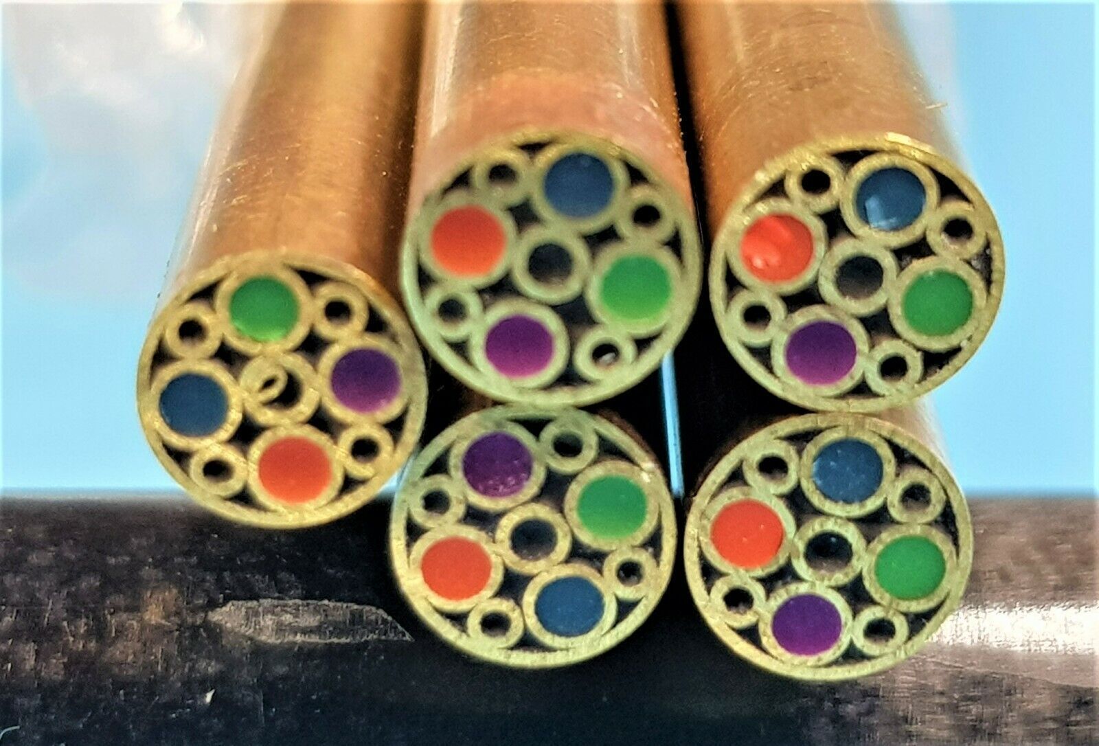Zum Verkauf stehen Mosaikpins vom russischen Meister Parameter: Länge: ca. 13,5cm Durchmesser: 5mm Material: Messing,Epoxidharz, Kupfer Der Preis versteht sich pro ein Pin !