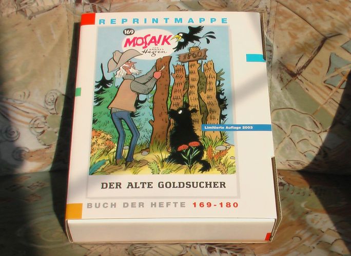 Mosaik-Reprintmappe 15 von Hannes Hegen mit den Nachdrucken der Mosaik-Hefte 169 bis 180. Limitierte Auflage von 2003 (Buchverlag Junge Welt) - limitierte Nummer: 01454. Umkarton, Heftordner und die 12 Einzelhefte sind in tadellosen verlagsneuem Zustand. Die Hefte sind ungelesen. Die Mappe wurde unt