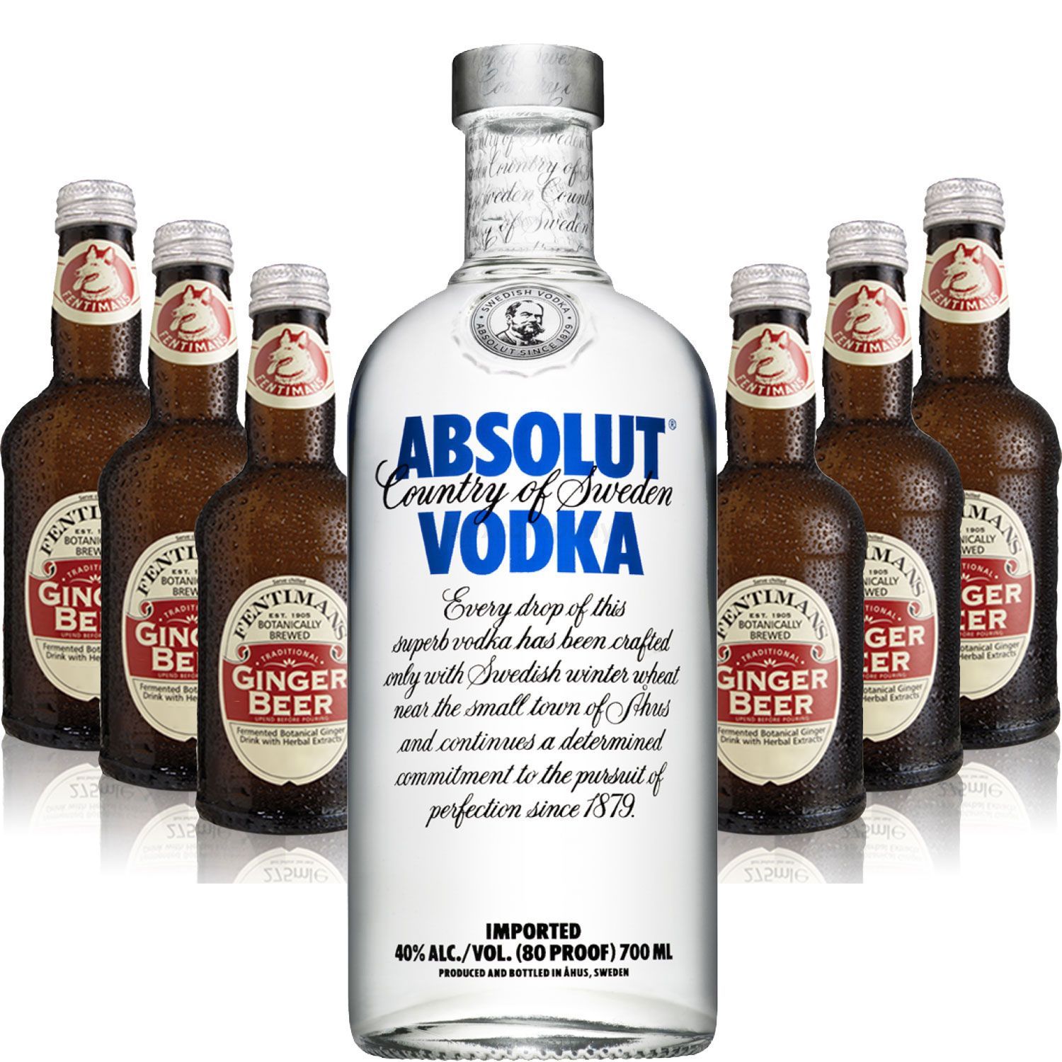 Absolut Moscow Mule Set - Absolut Vodka 0,7l 700ml (40% Vol) + 6x Fentimans Traditional