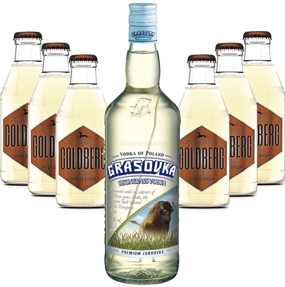 Grasovka Moscow Mule Set - Grasovka Vodka 1L (40% Vol) + 6x Goldberg Intense Ginger 200m